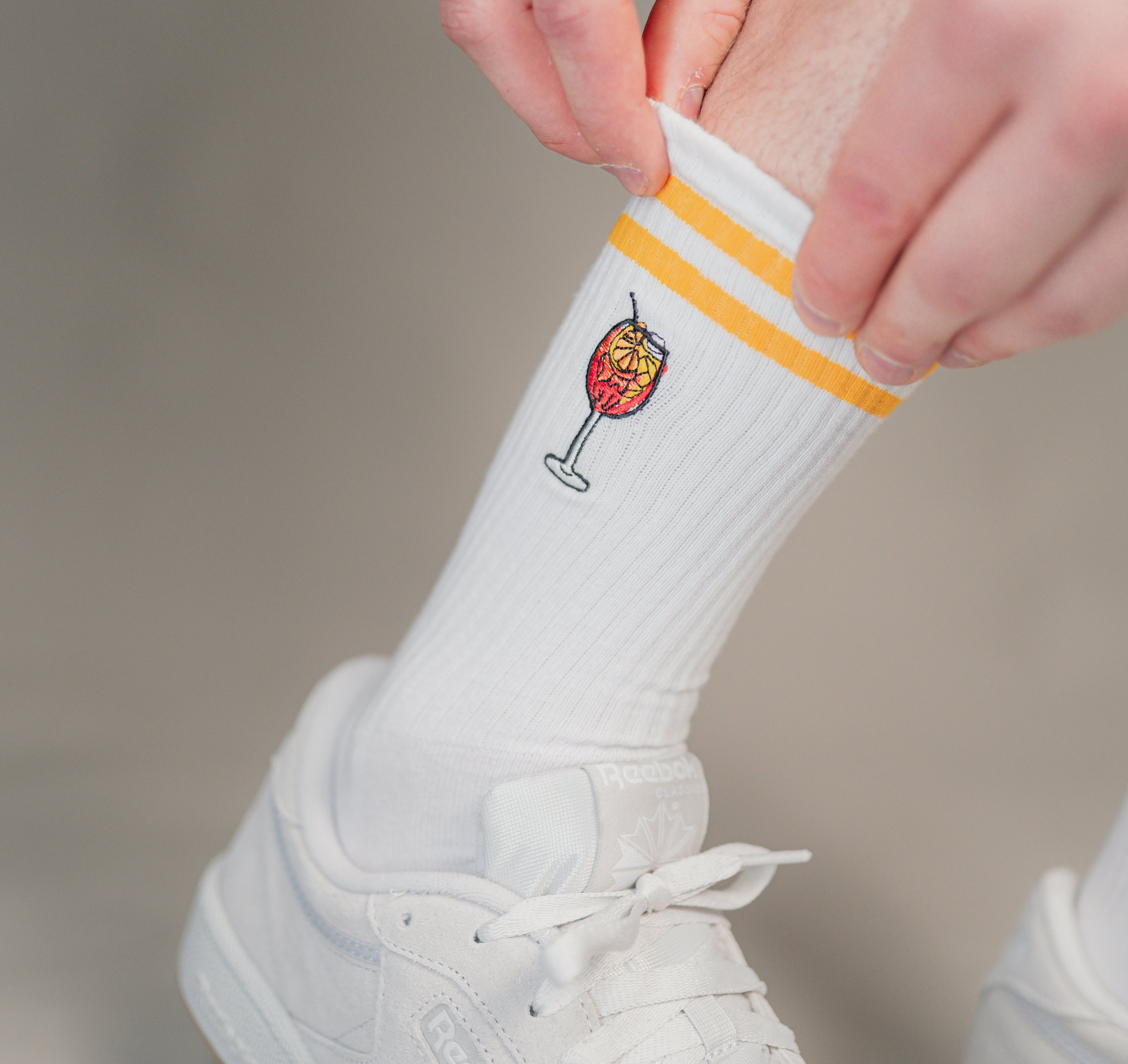 Wir sind nicht nur Mode – wir sind ein Lifestyle. Jedes Teil, das wir kreieren, ist inspiriert von ikonischen Getränken, gefertigt aus 100 % Bio-Baumwolle und bestickt mit hochwertigem, ökologischem Garn. Unsere Designs wie Aperol Spritz, Lillet Wildberry oder Jägermeister bestechen durch einen maximalen Detailgrad auf dezenter Größe auf Socken und anderen Textilien. Unser Fokus liegt auf Qualität, Authentizität und einer Leidenschaft für Kreativität.