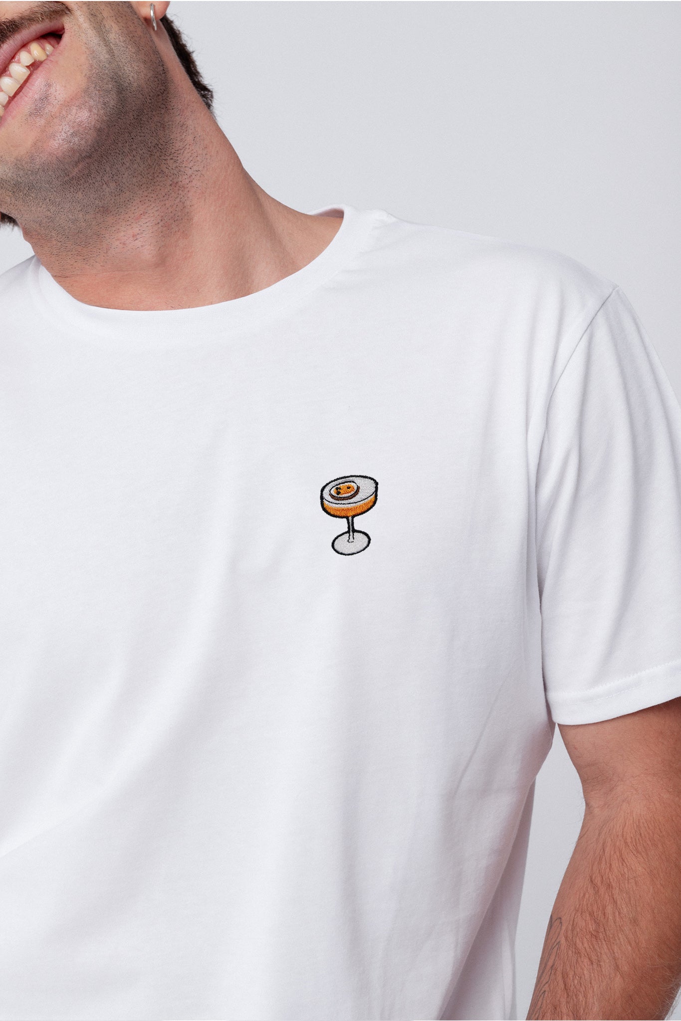 Besticktes Bio Baumwoll Unisex T-Shirt mit schwerem Stoff (190gsm) und gesticktem Pornstar Martini Design