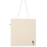 Borsa in cotone biologico ricamata e prodotta in modo equo con il disegno di Hugo.
