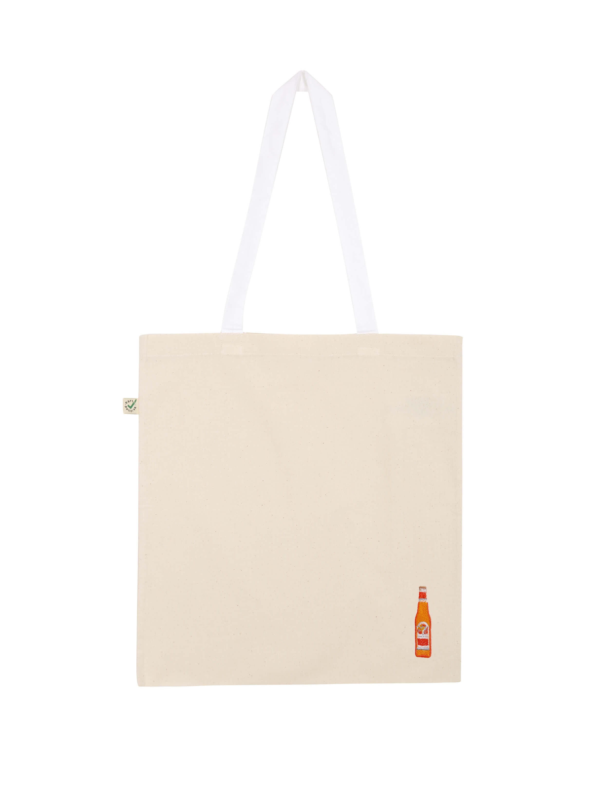 Borsa in cotone biologico ricamata e prodotta in modo equo con il design ufficiale di Somersby Orange Spritz.