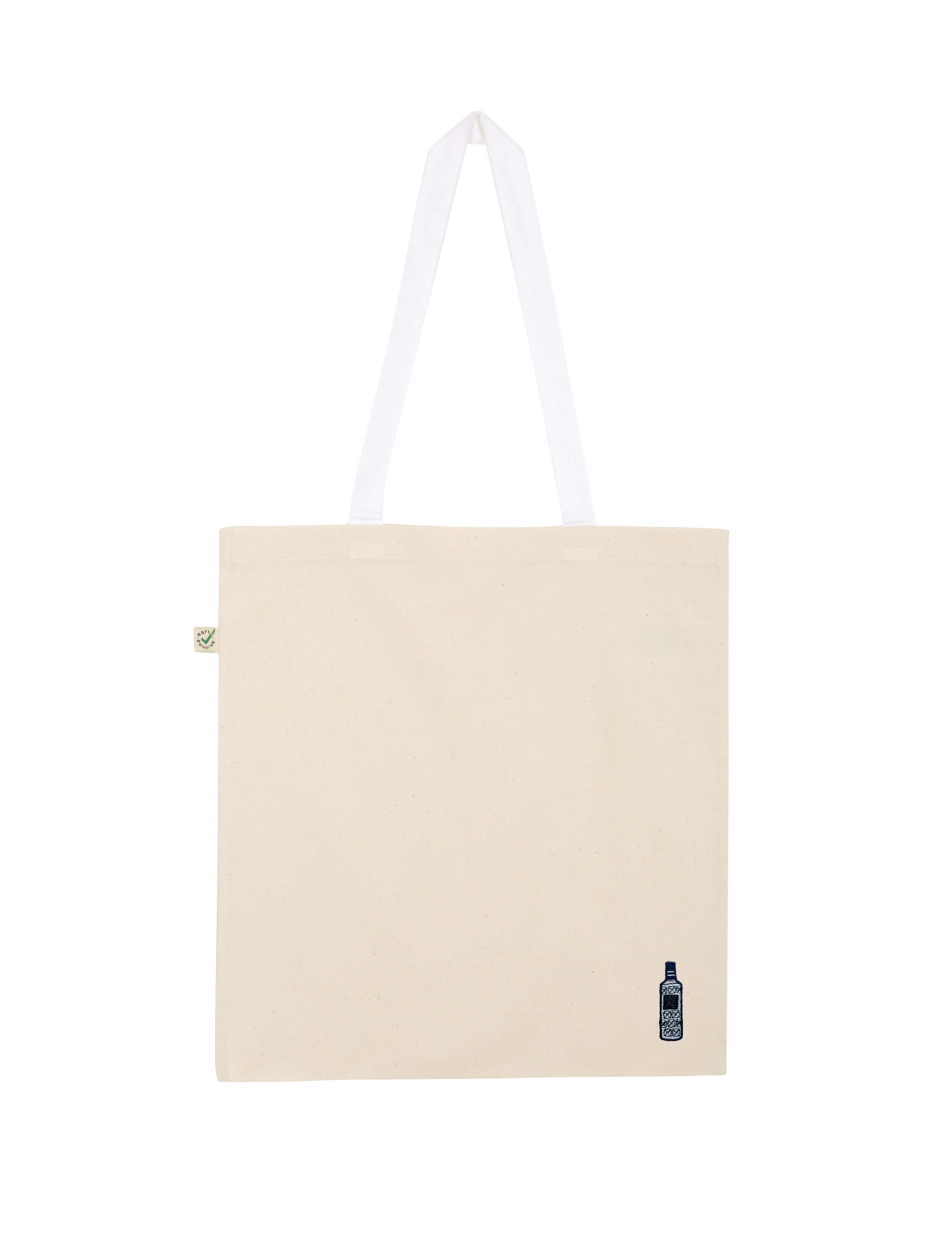 Bestickte, fair produzierte Bio-Baumwoll-Tragetasche im offiziellen Three Sixty Design.