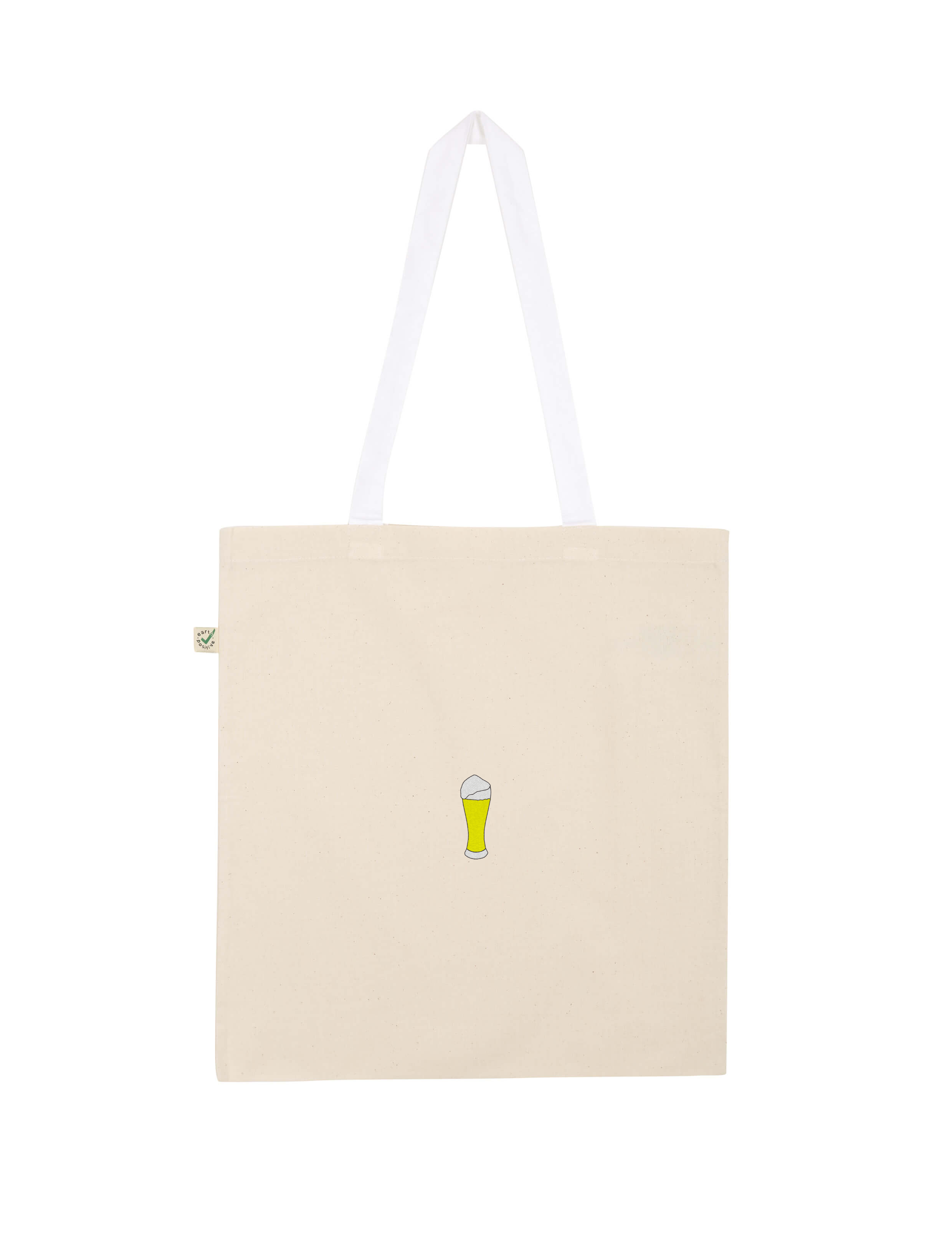 Borsa in cotone biologico ricamato e prodotto in modo equo con design Weißbier.