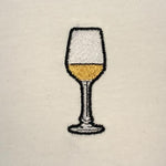 Borsa in cotone biologico ricamata e prodotta in modo equo, con disegno di vino bianco.