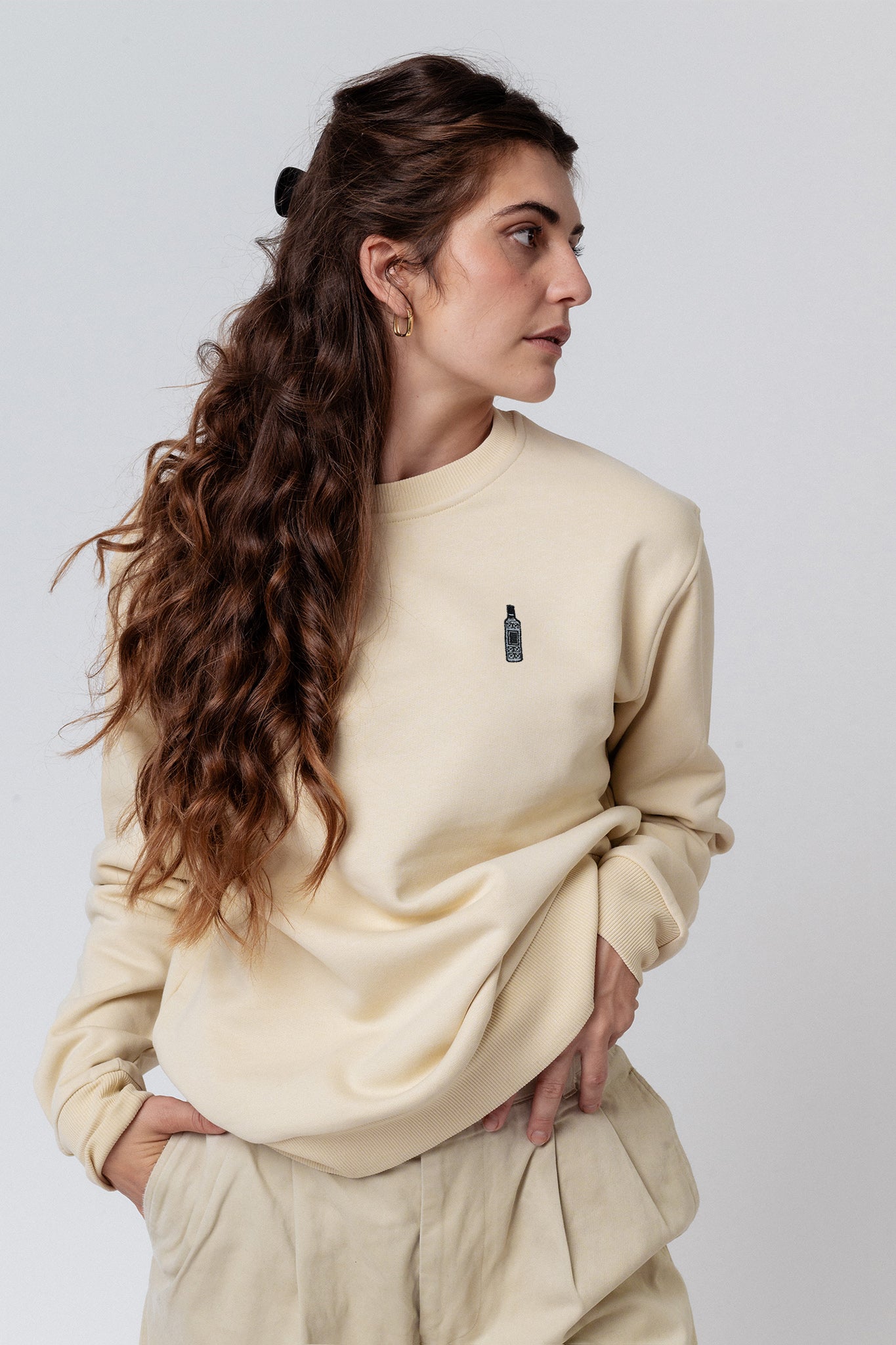 Bestickter Bio Baumwoll Unisex Pullover mit schwerem Stoff (320gsm) und der offiziellen gestickten Three Sixty Flasche