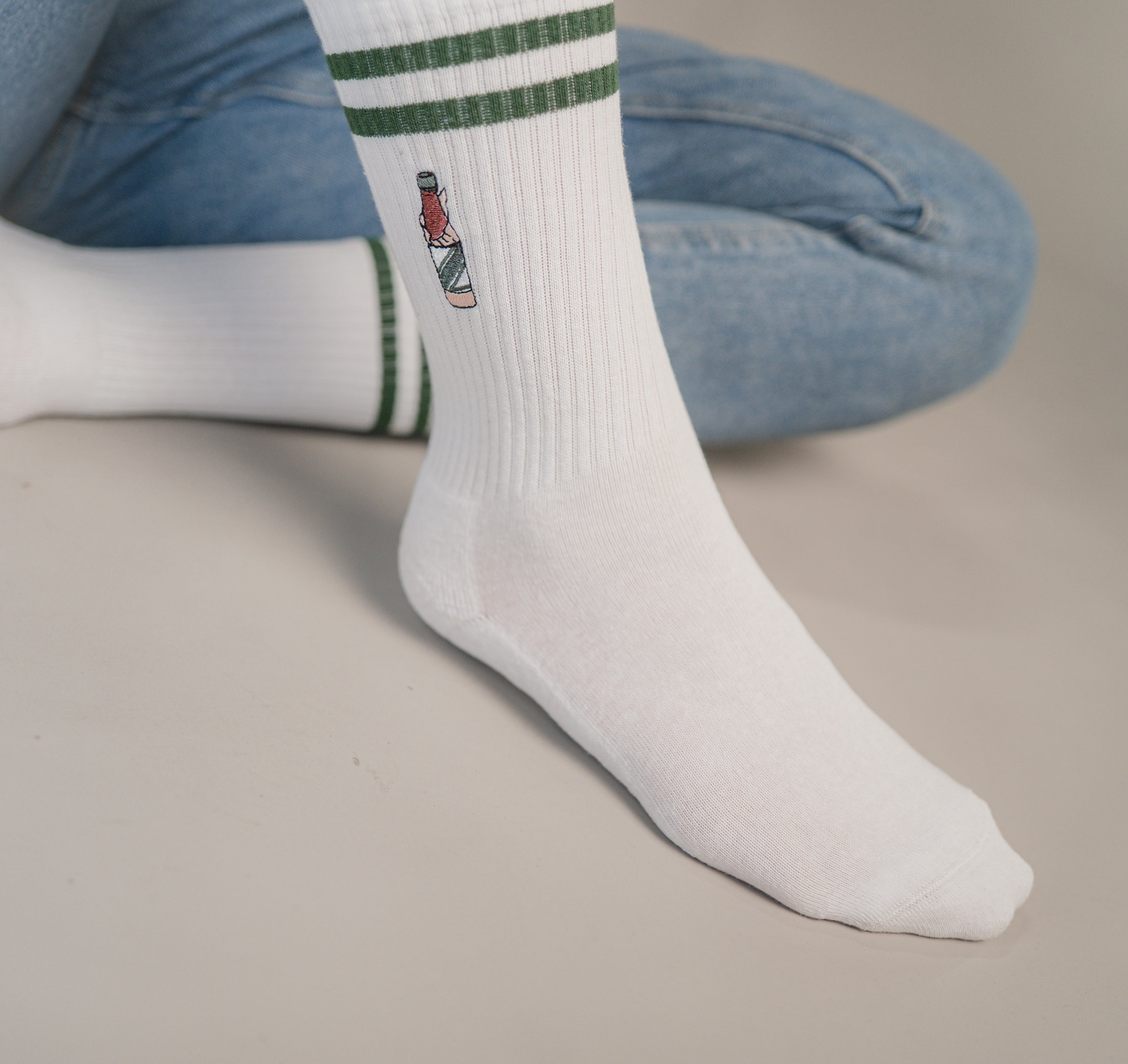 Wir sind nicht nur Mode – wir sind ein Lifestyle. Jedes Teil, das wir kreieren, ist inspiriert von ikonischen Getränken, gefertigt aus 100 % Bio-Baumwolle und bestickt mit hochwertigem, ökologischem Garn. Unsere Designs wie Aperol Spritz, Lillet Wildberry oder Jägermeister bestechen durch einen maximalen Detailgrad auf dezenter Größe auf Socken und anderen Textilien. Unser Fokus liegt auf Qualität, Authentizität und einer Leidenschaft für Kreativität.