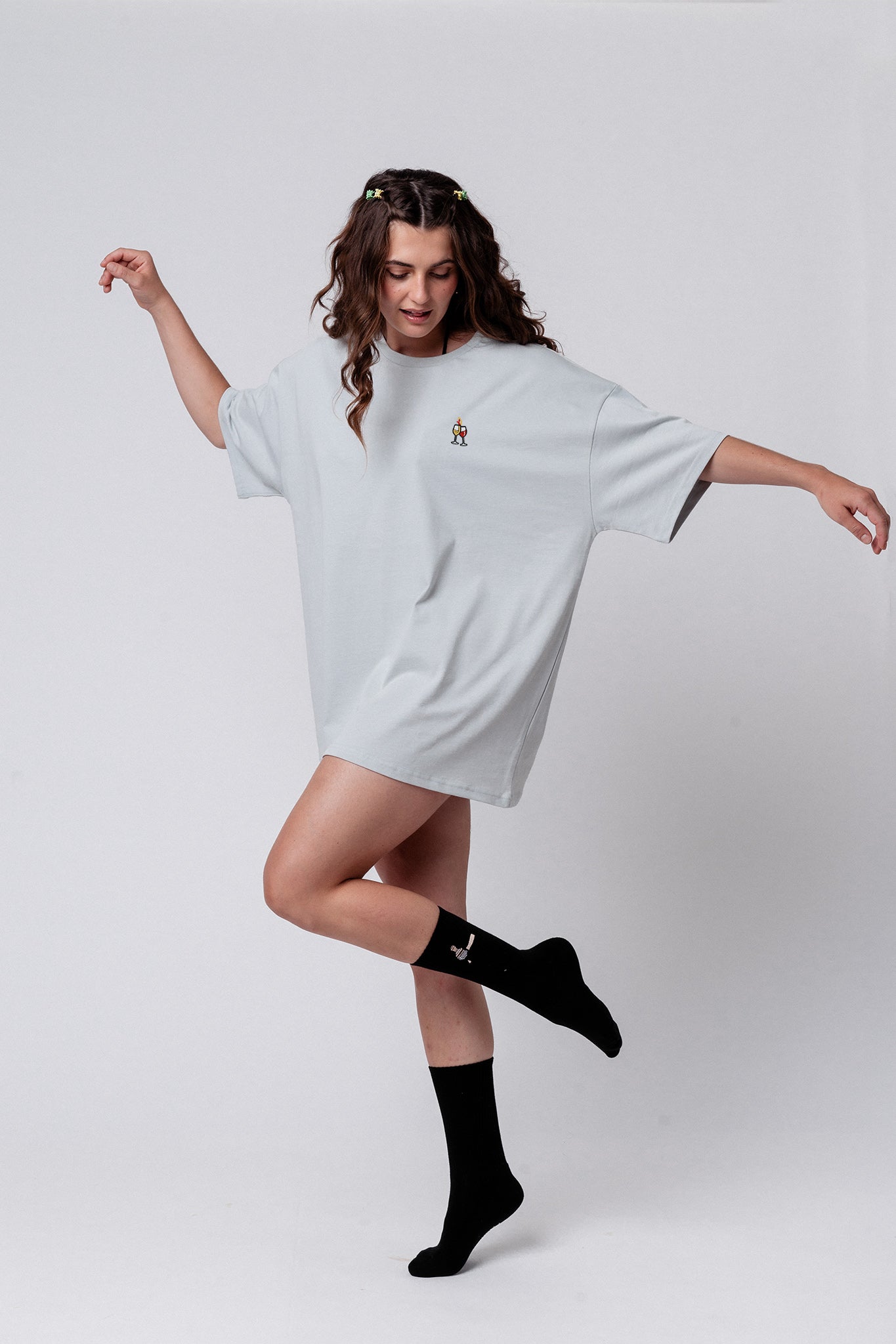 Heavy Oversized Bio Baumwoll T-Shirt mit extra schwerem Stoff (230gsm) und dem gestickten Wein Duett Design