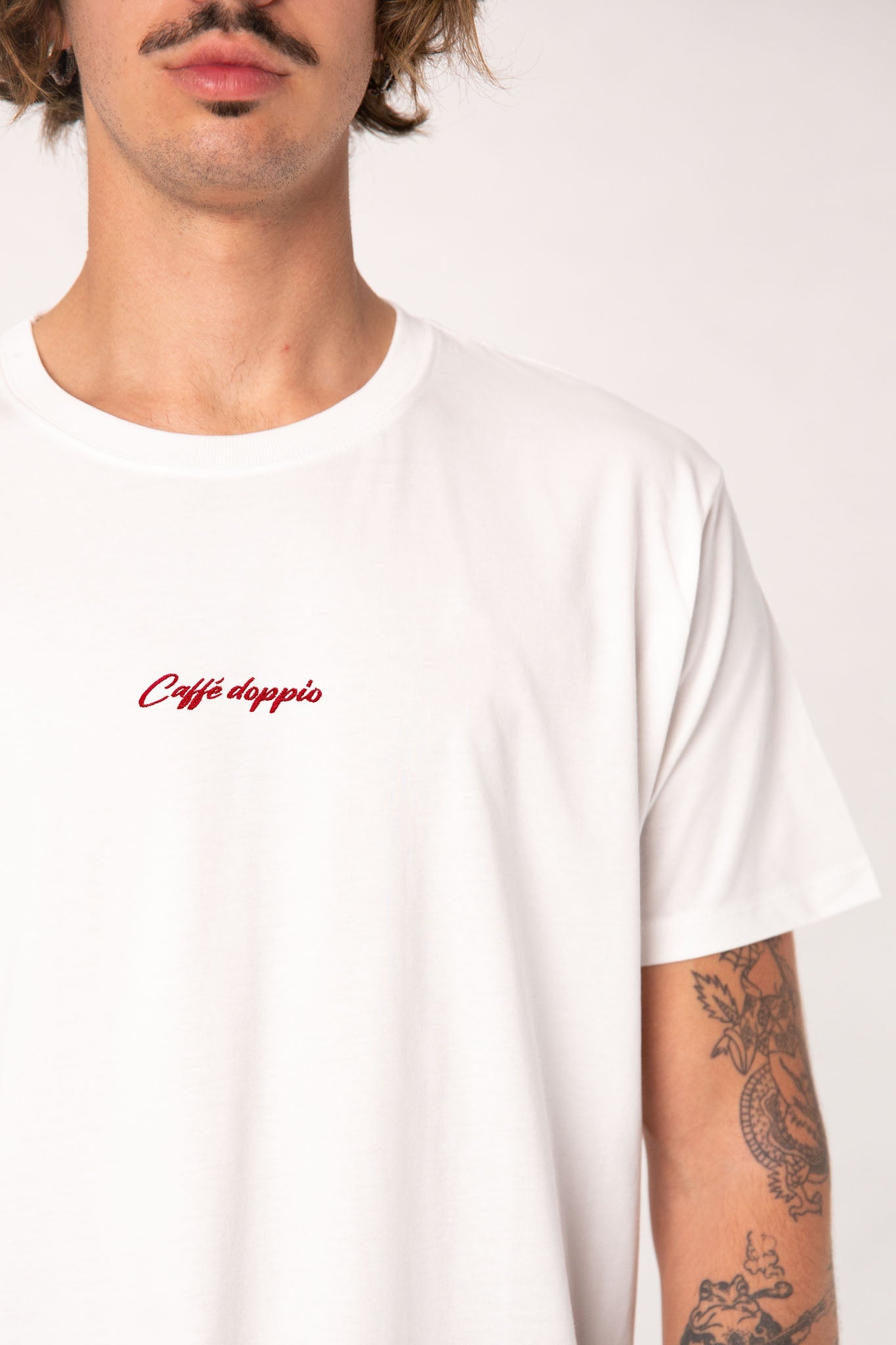 Super hochwertiges Bio Baumwoll Unisex T-Shirt mit extrem angenehmen Stoff (190gsm) und gesticktem Caffé doppio Design