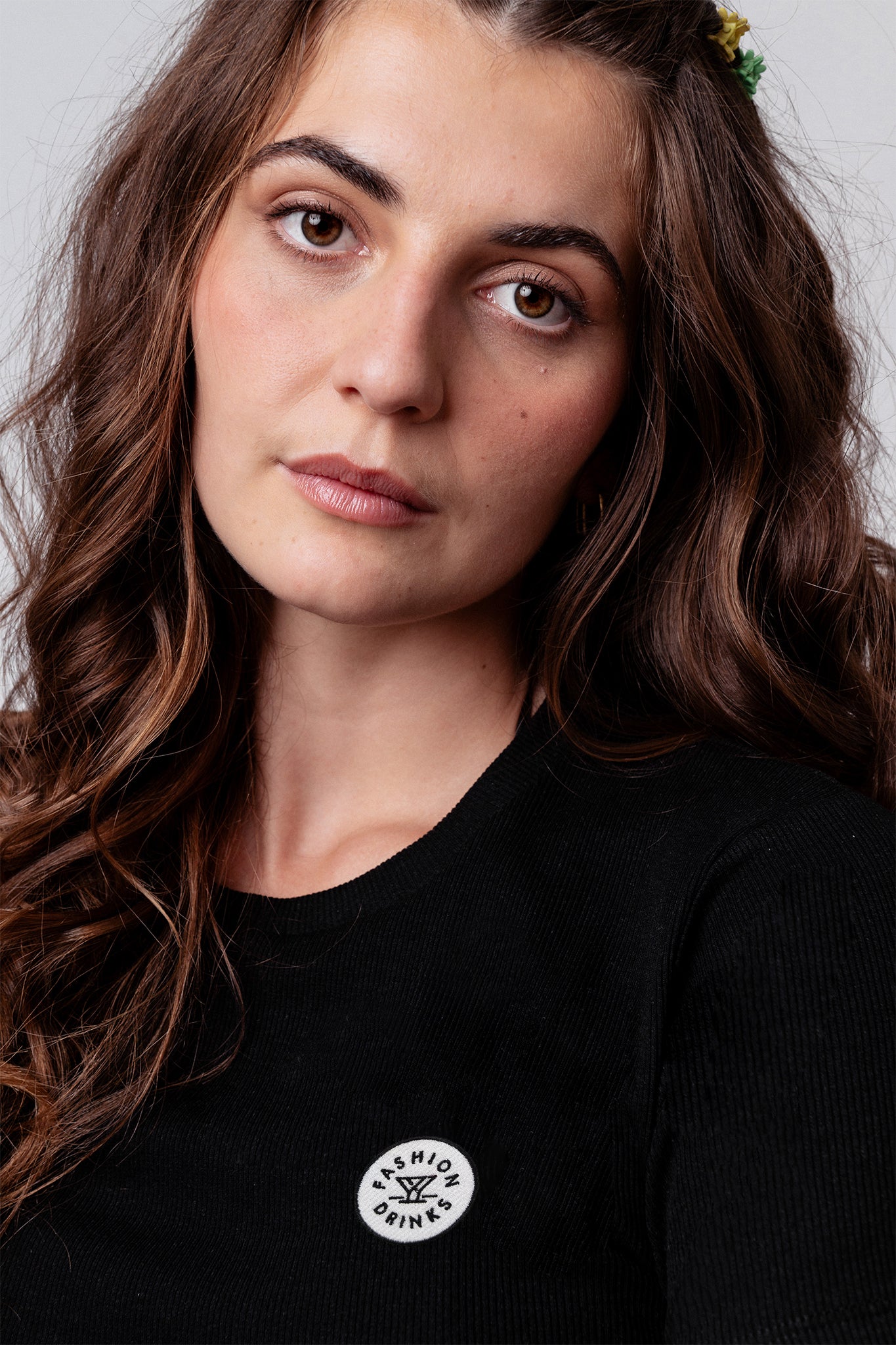 Super hochwertiges Bio Baumwoll Cropped T-Shirt mit gesticktem Fashion Drinks Design in drei verschiedenen Schnitt-Varianten: Ripped, Regular & Oversized