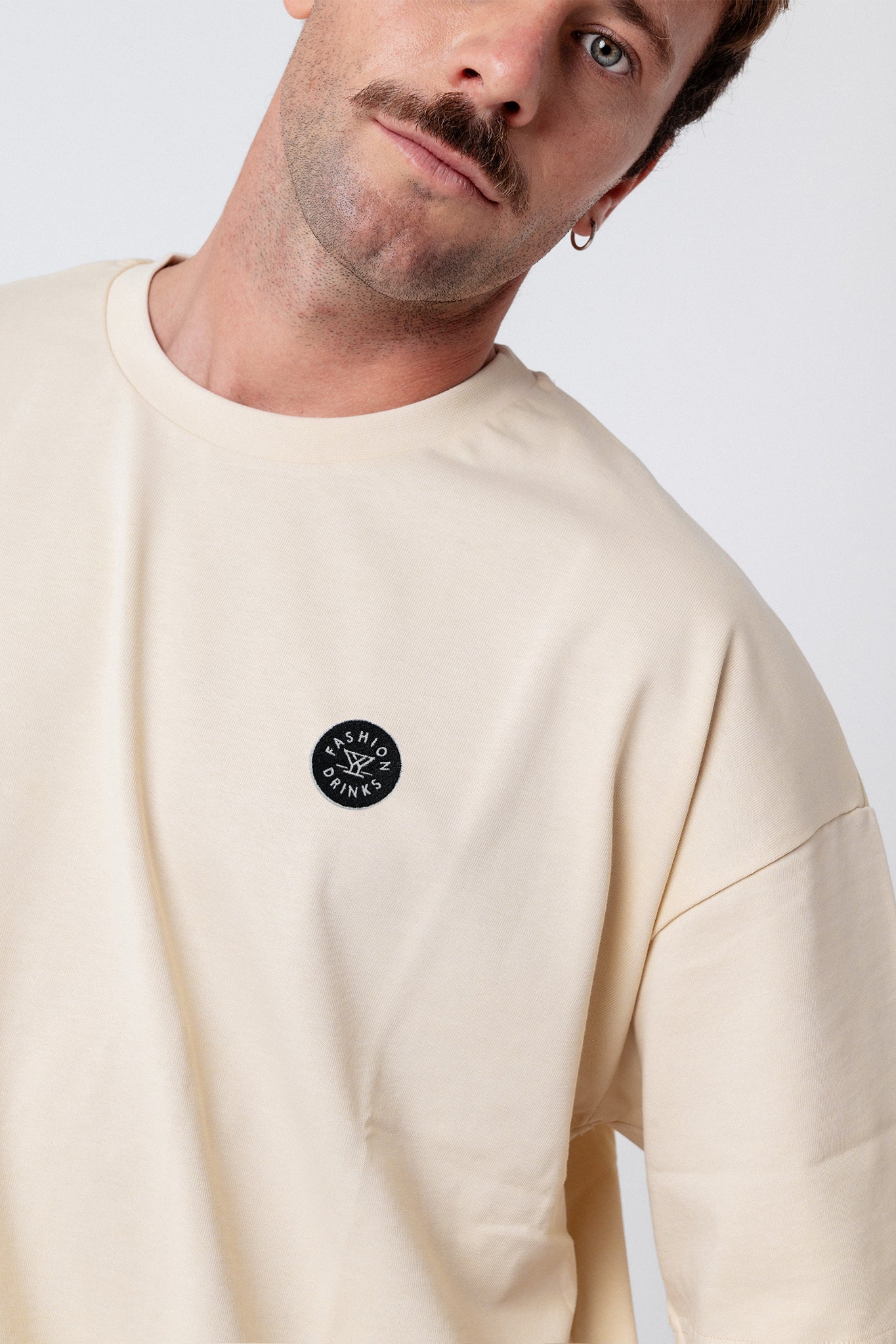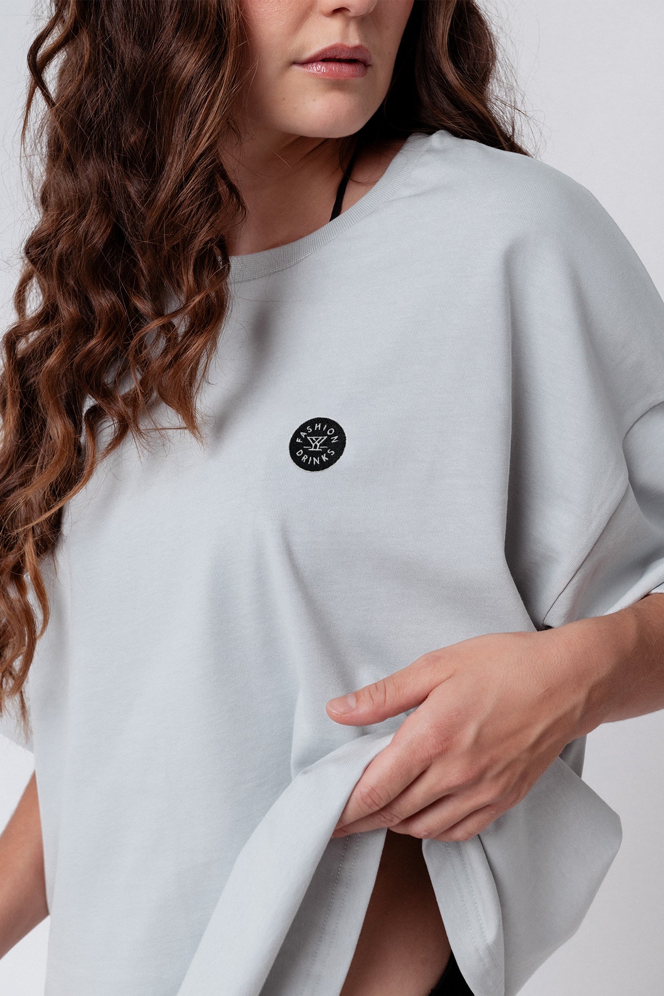 Heavy Oversized Bio Baumwoll T-Shirt mit extra schwerem Stoff (230gsm) und gesticktem Fashion Drinks Design