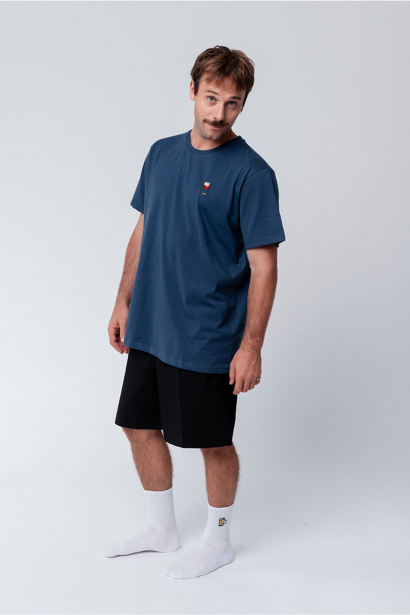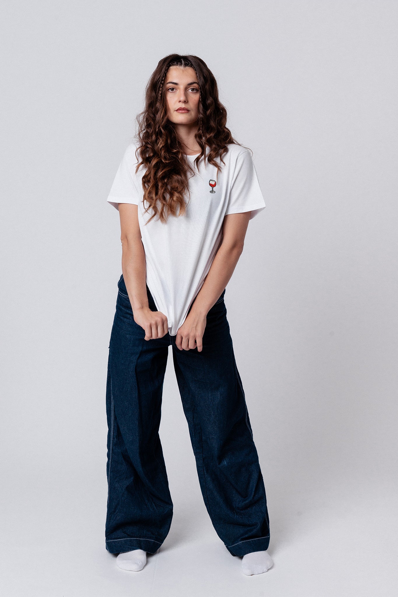 Besticktes Bio Baumwoll Unisex T-Shirt mit schwerem Stoff (190gsm) und gesticktem Glaserl Rotwein Design