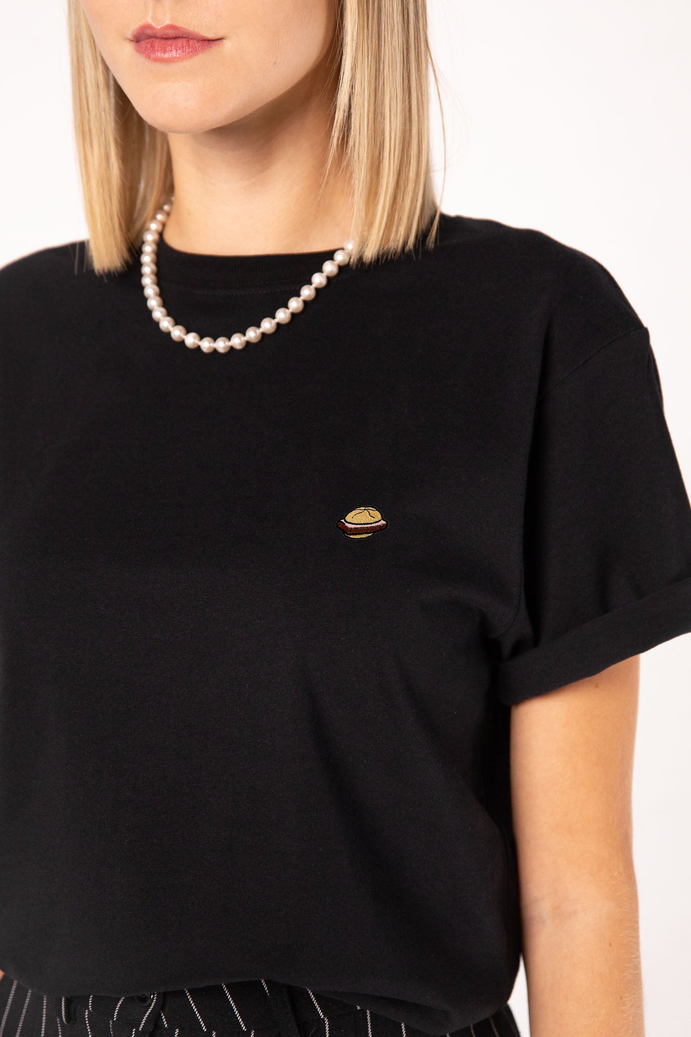Besticktes Bio Baumwoll Unisex T-Shirt mit schwerem Stoff (190gsm) und gesticktem Leberkassemmel Design