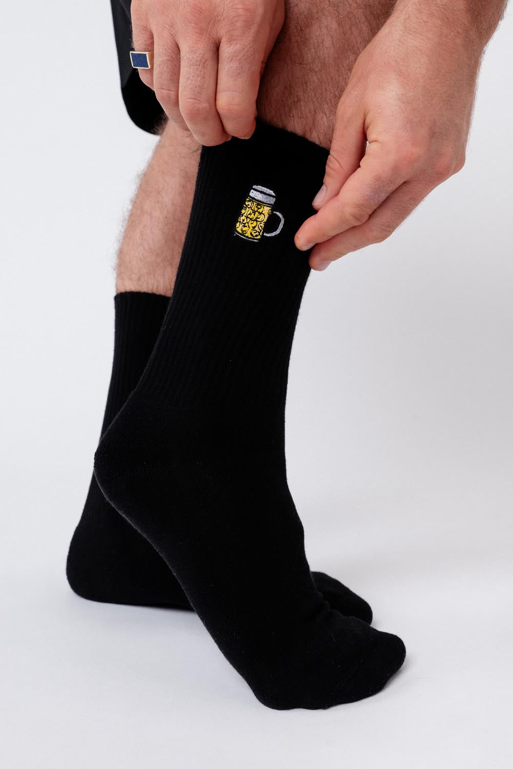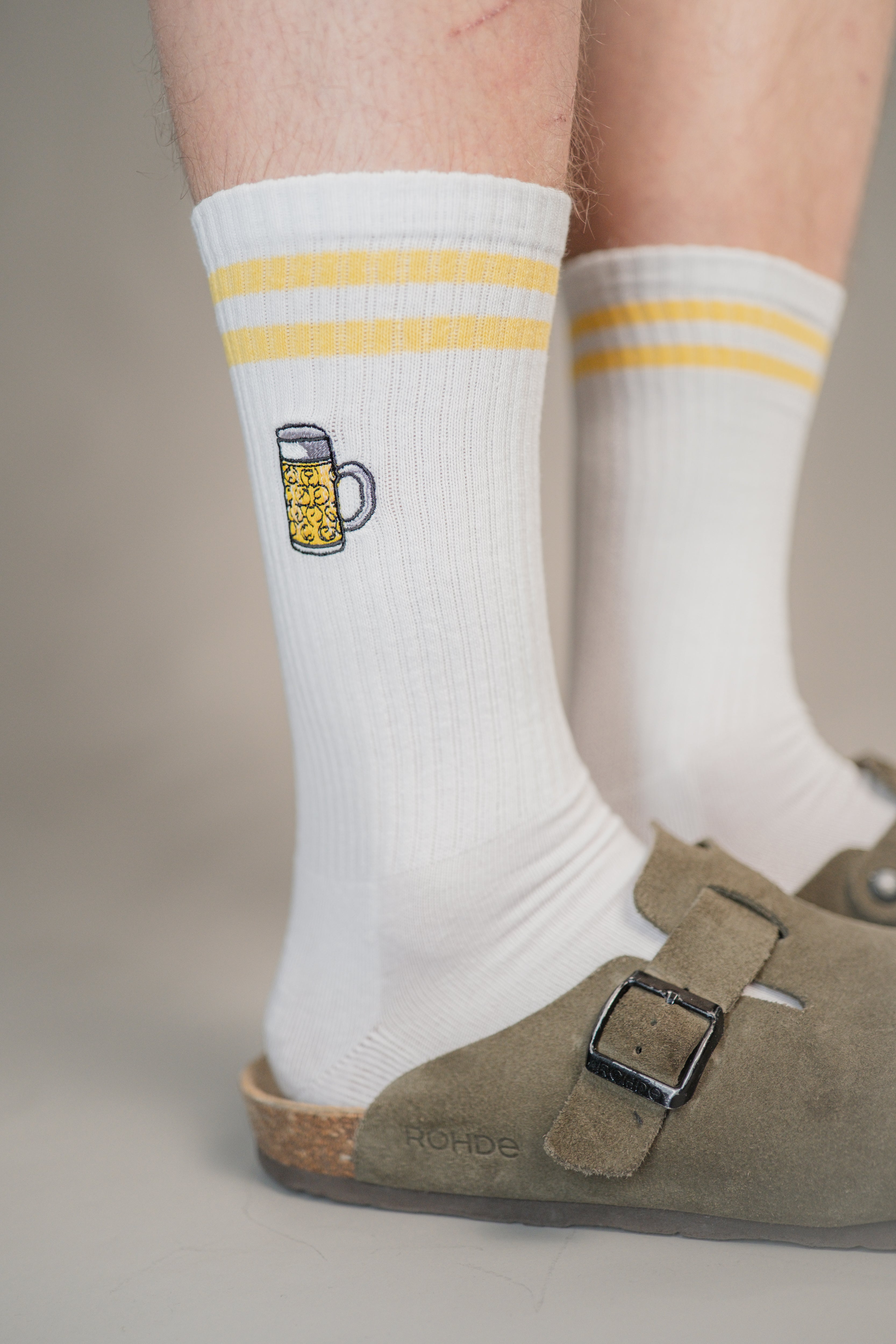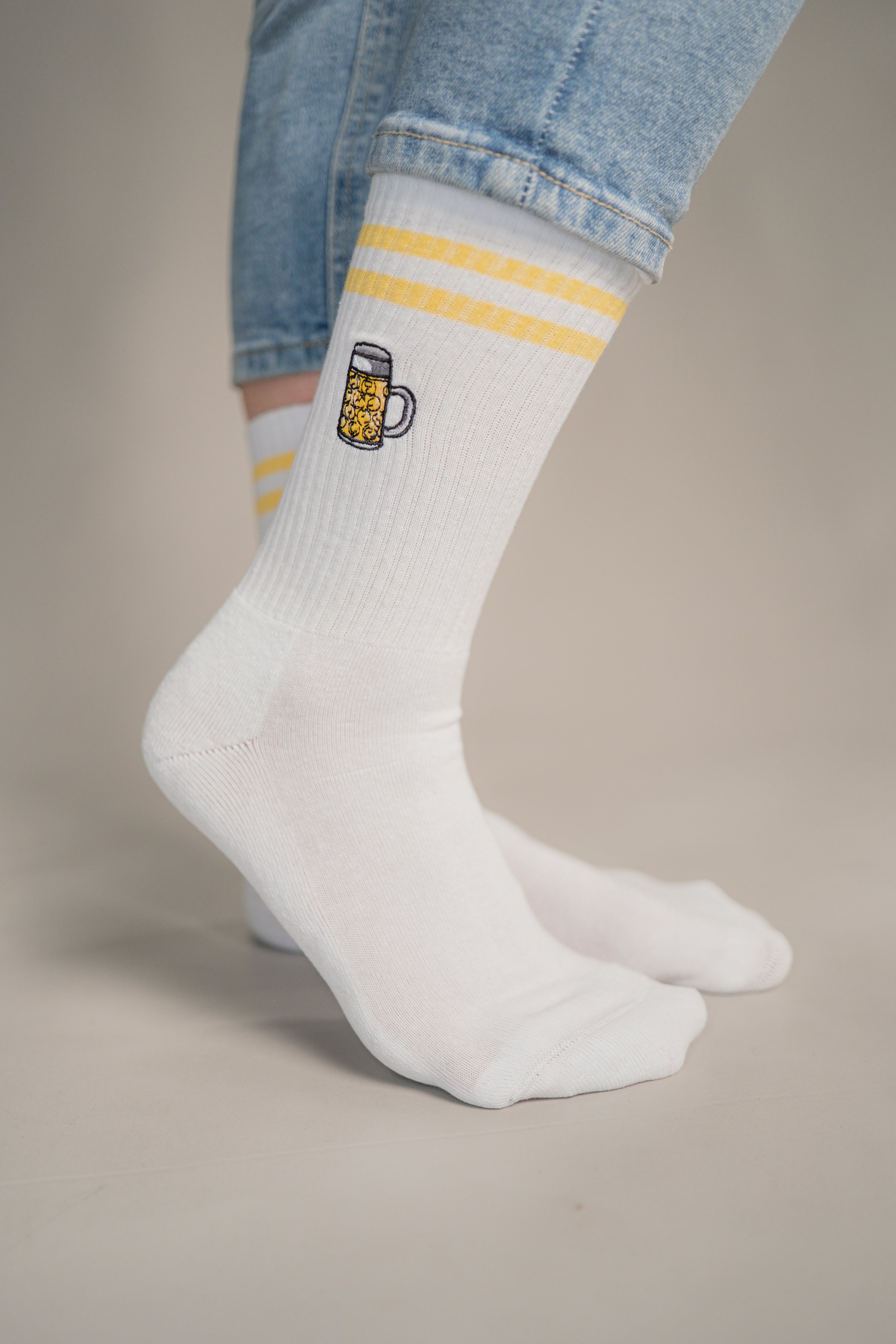 Super hochwertige Bio Baumwoll Crew Socken mit gesticktem Maßkrug Design