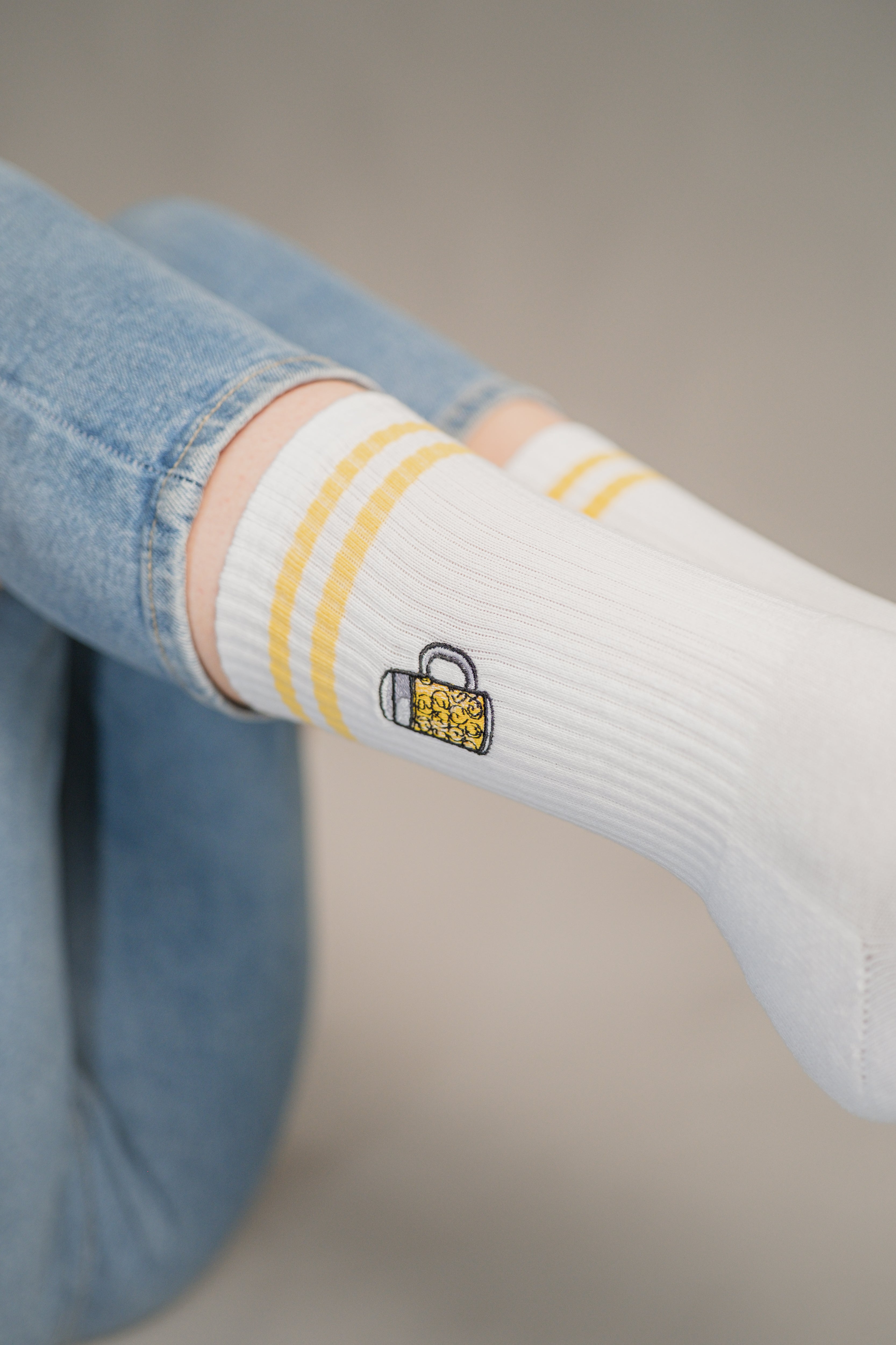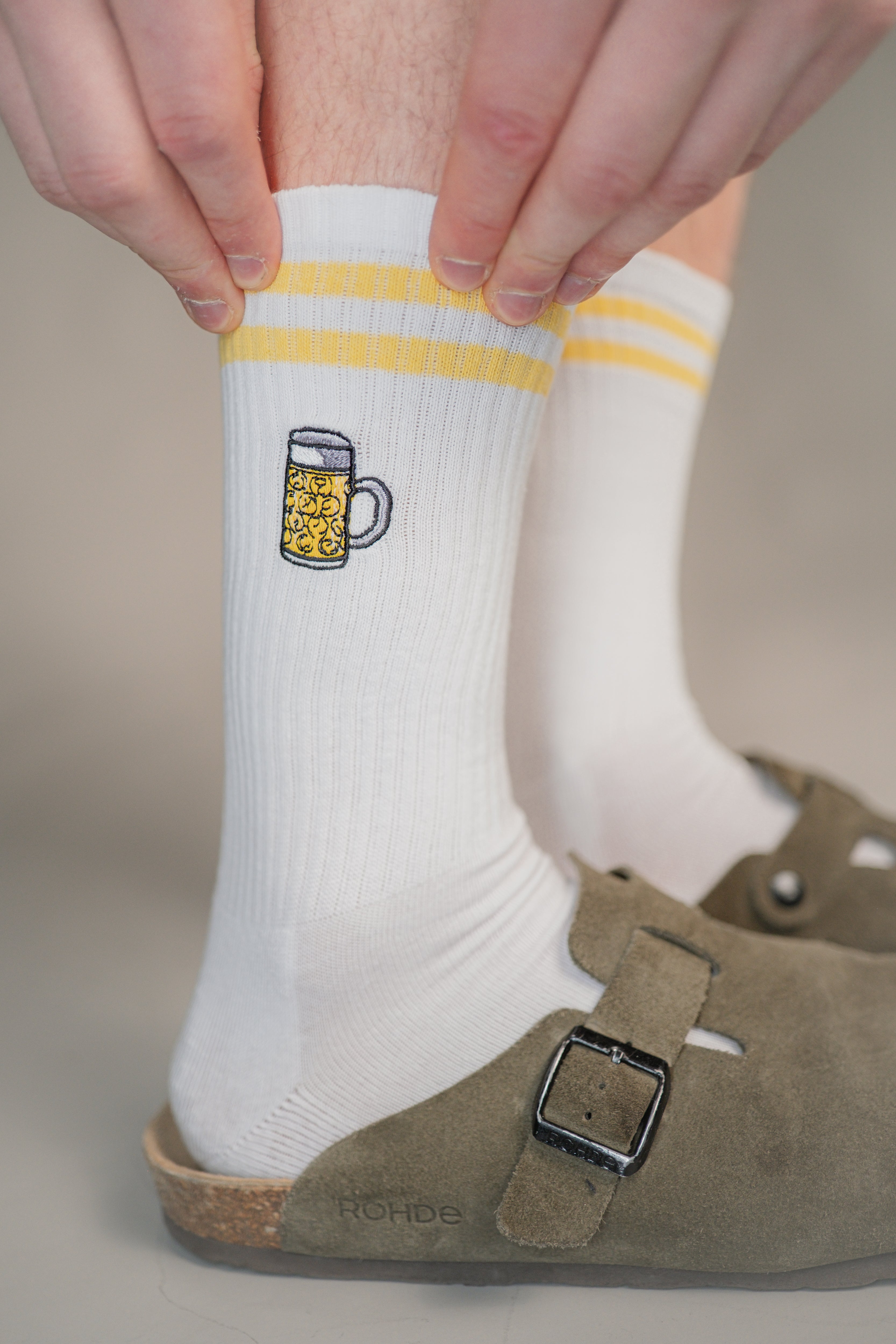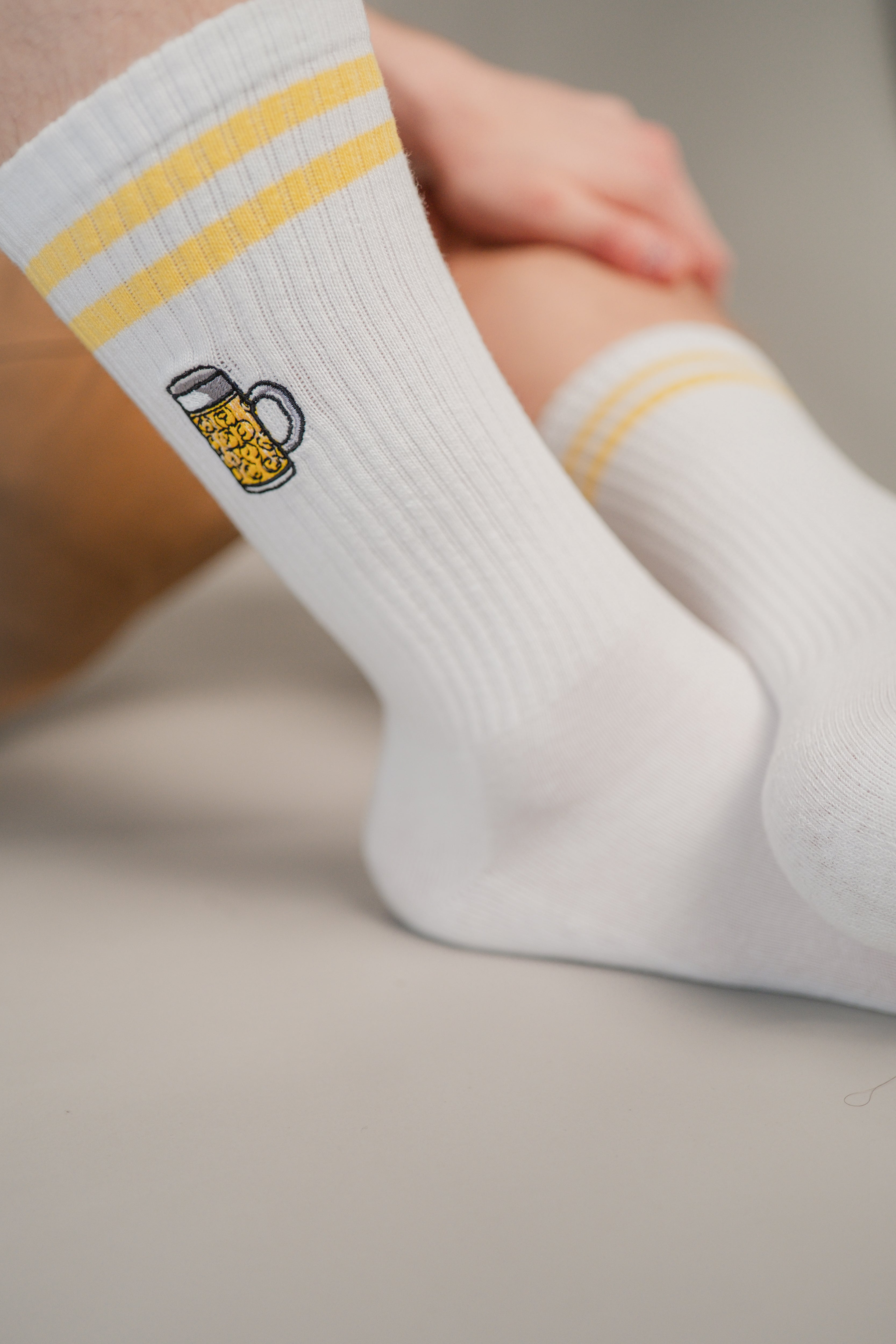 Super hochwertige Bio Baumwoll Crew Socken mit gesticktem Maßkrug Design