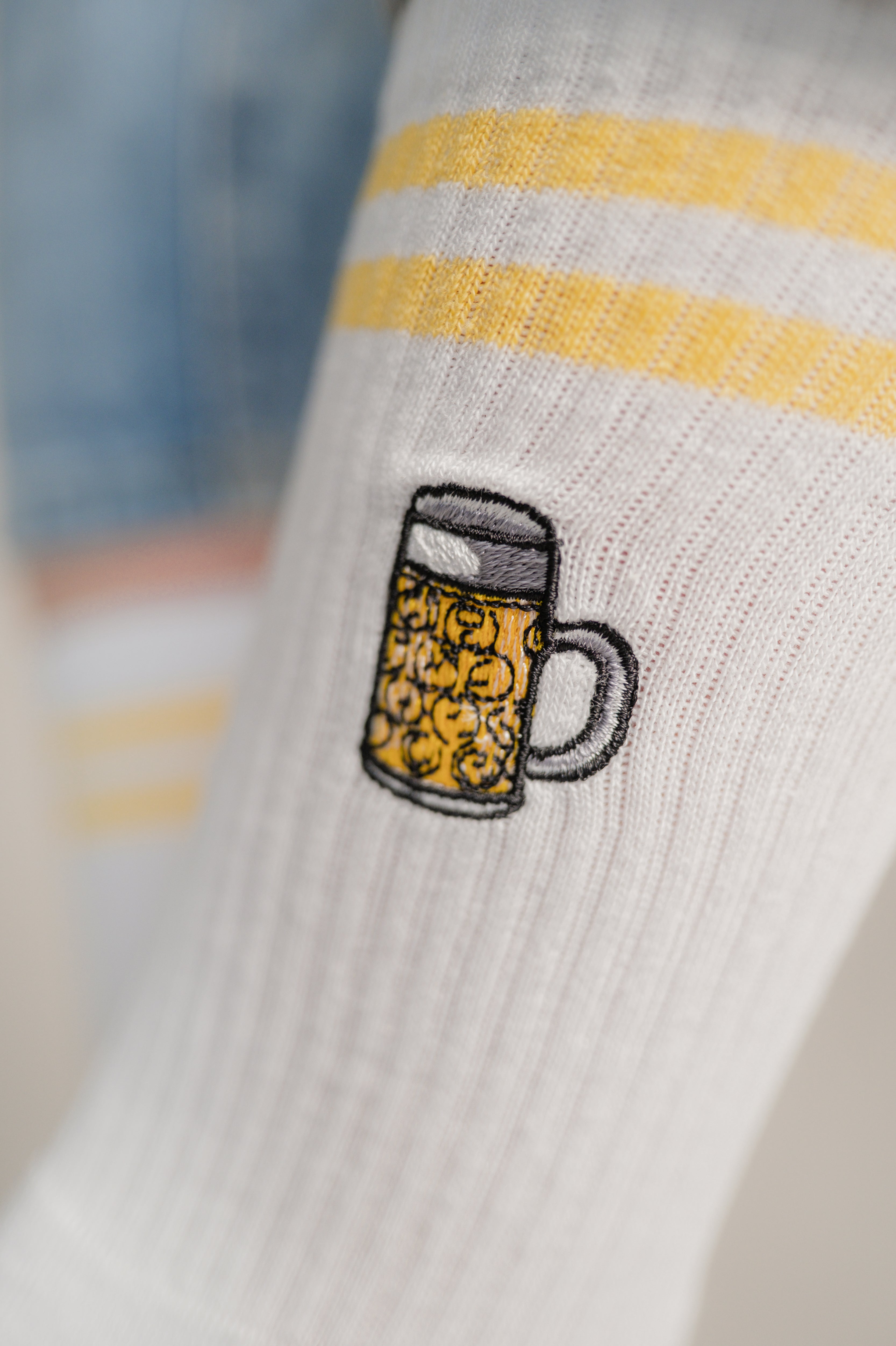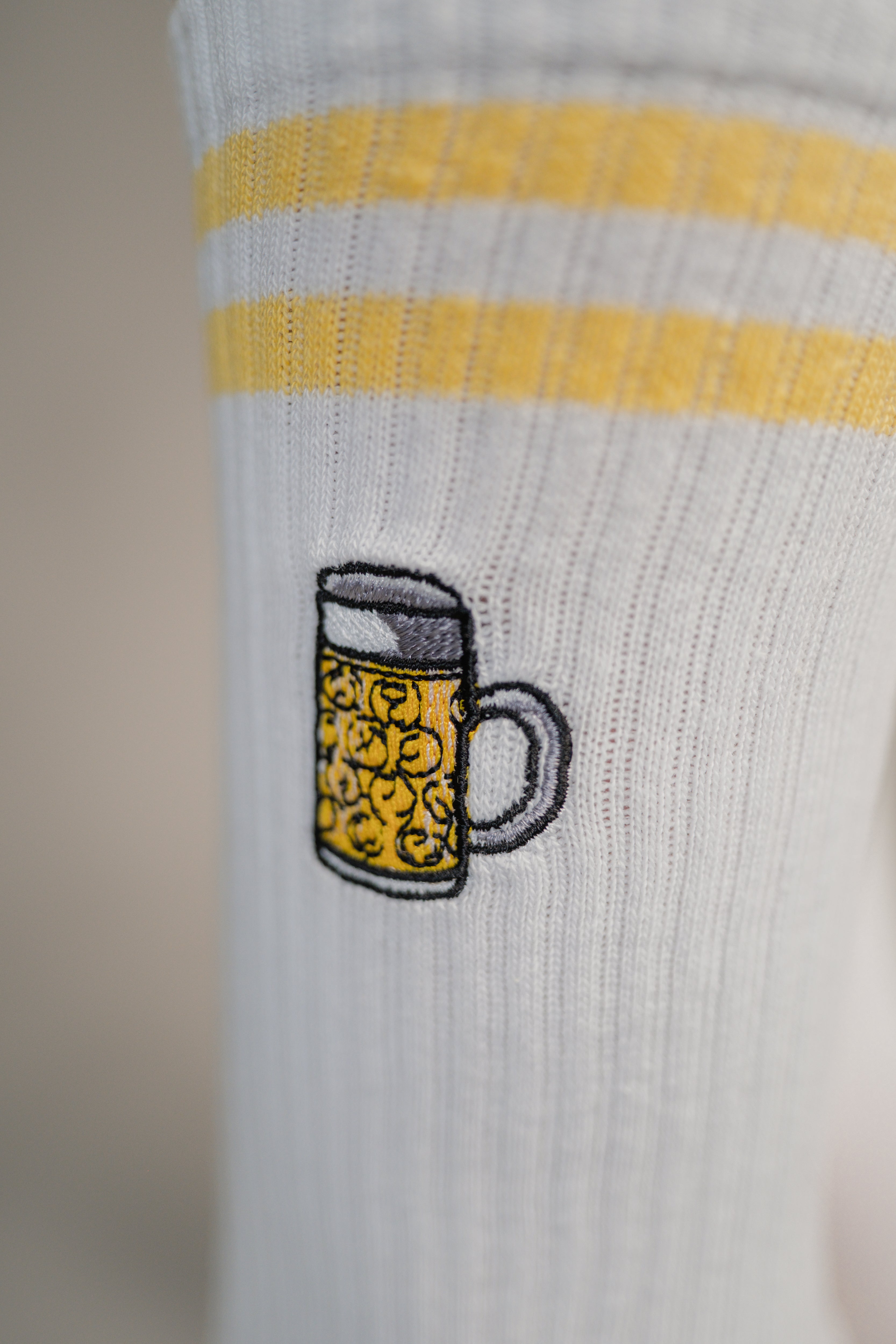 Die Stickerei auf unseren Fashion Drinks Socken bleibt auch nach mehrmaligem Waschen in einwandfreier Form. Wir verwenden präzise Industriemaschinen, die speziell für feine, detaillierte Stickarbeiten entwickelt wurden. So bleibt die Stickerei stabil und die Socken behalten ihre Form. Um die Qualität zu erhalten, empfehlen wir, die Socken bei niedrigen Temperaturen zu waschen und sie auf links zu drehen.