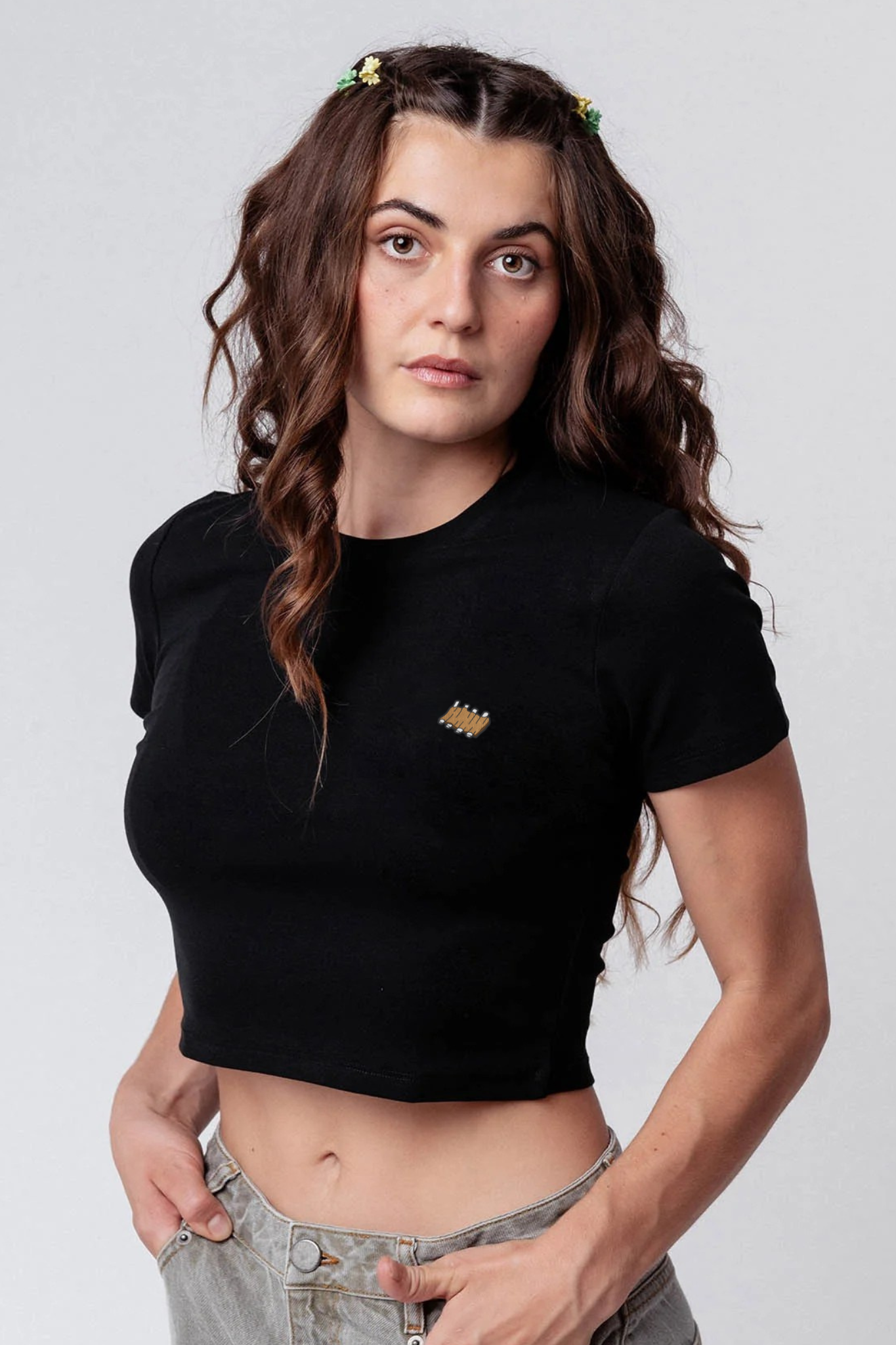 Rippchen | Besticktes Bio Baumwoll Cropped T-Shirt