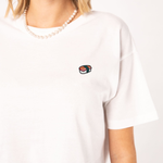 Super hochwertiges Bio Baumwoll Cropped T-Shirt mit gesticktem Sushi Nigiri Design in drei verschiedenen Schnitt-Varianten: Ripped, Regular & Oversized