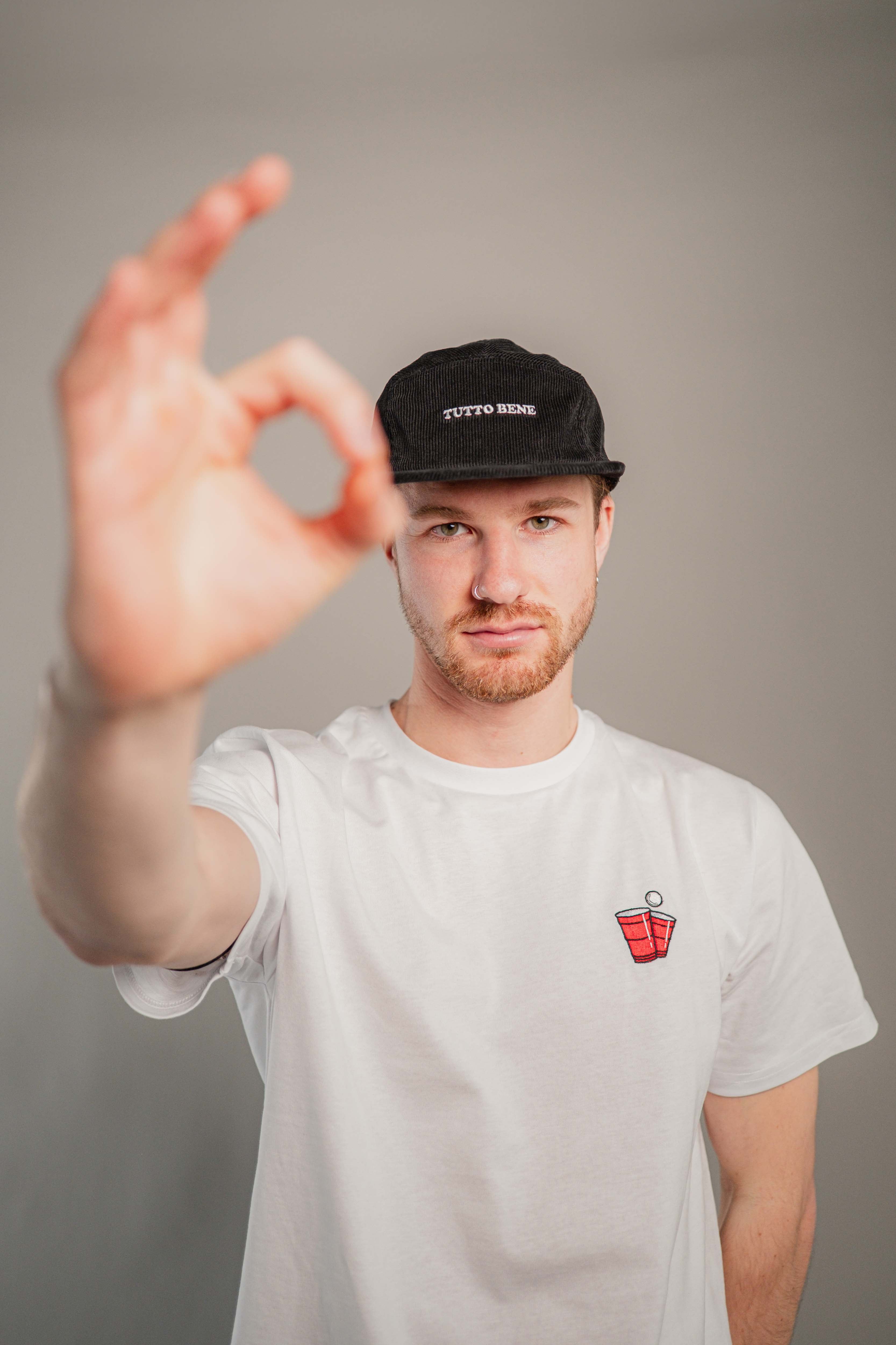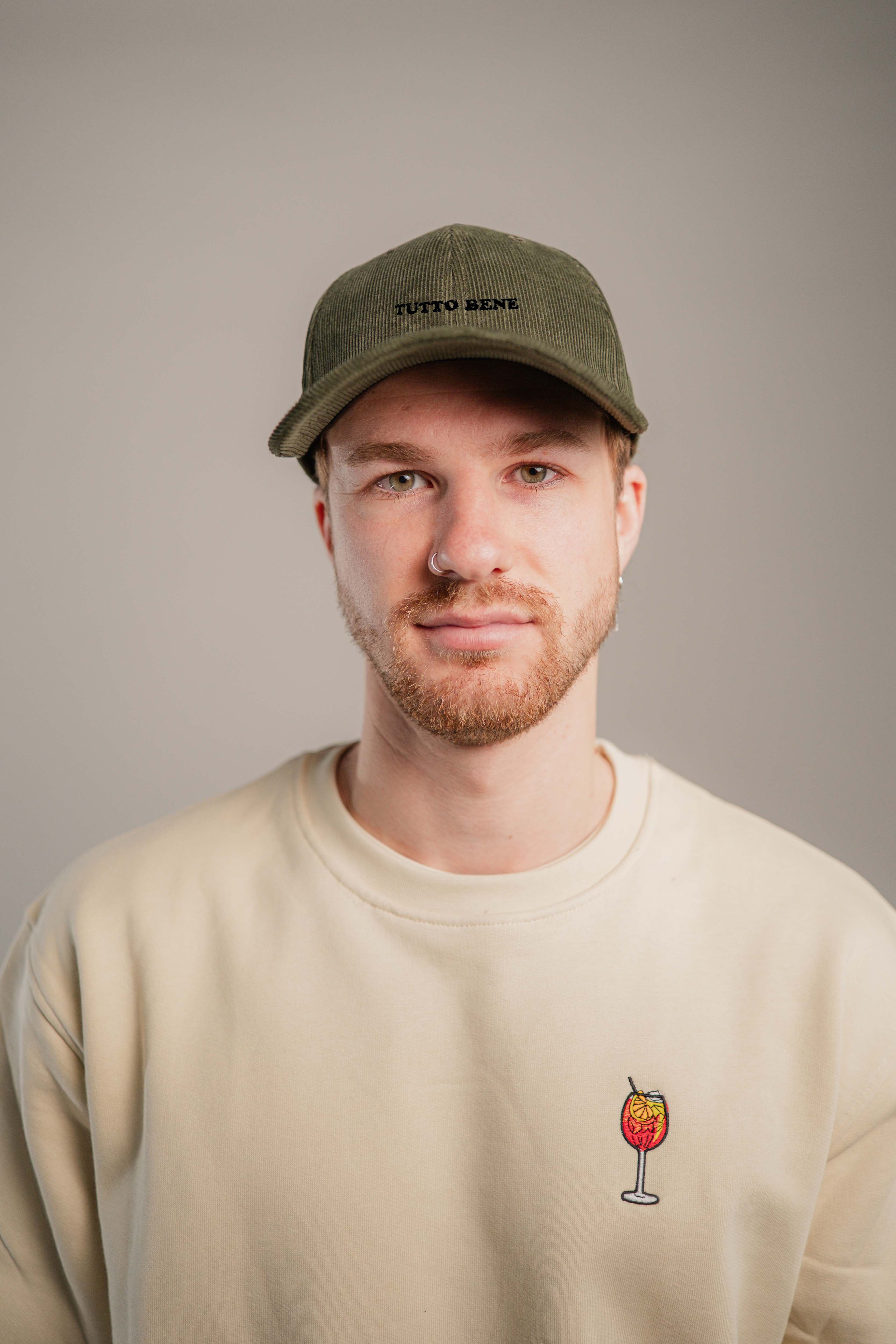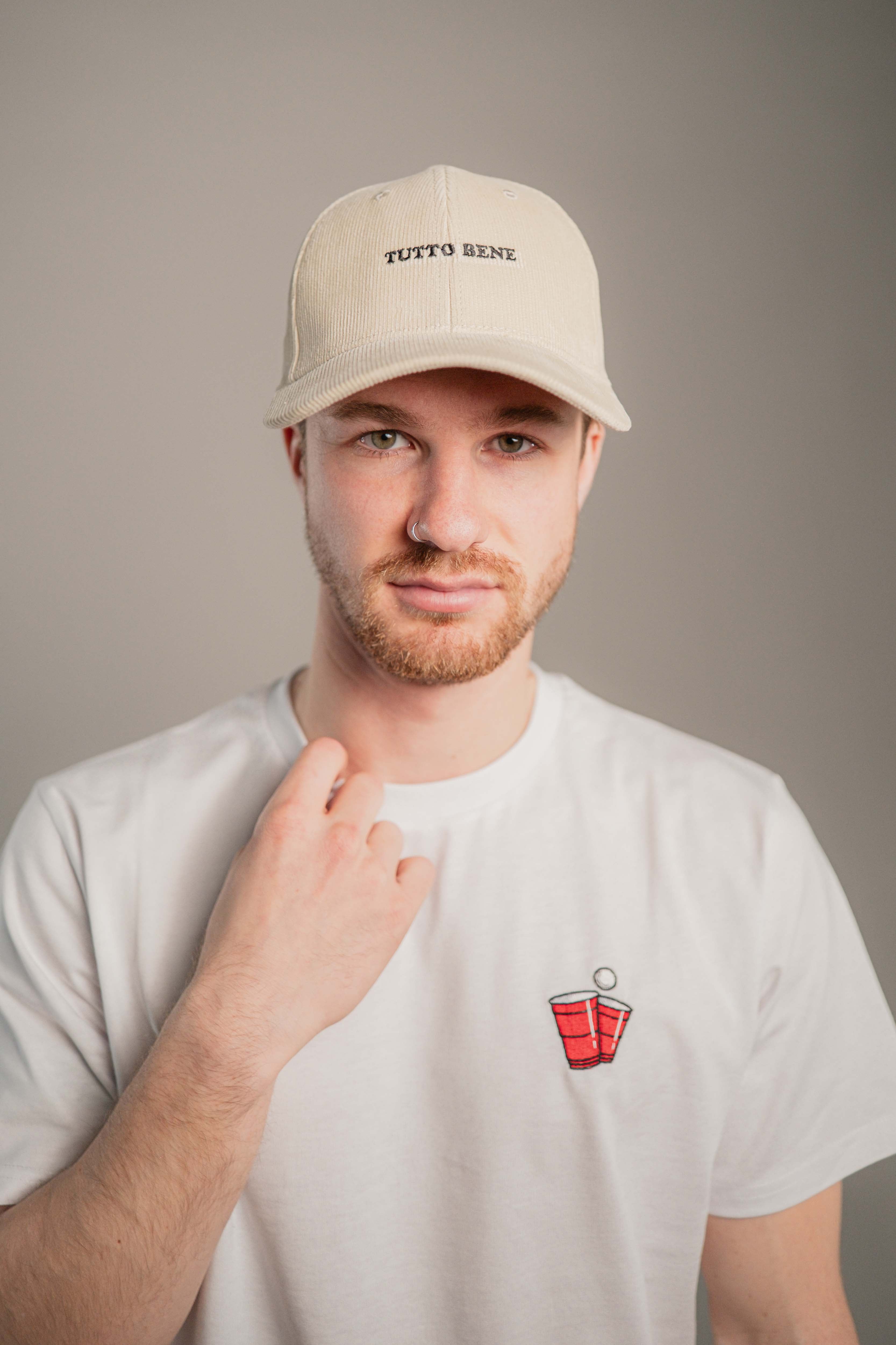 Super hochwertige Cord Cap aus 100% Bio Baumwolle mit gestickten "Tutto Bene" Schriftzug vorne und kleiner gestickter ok Hand seitlich