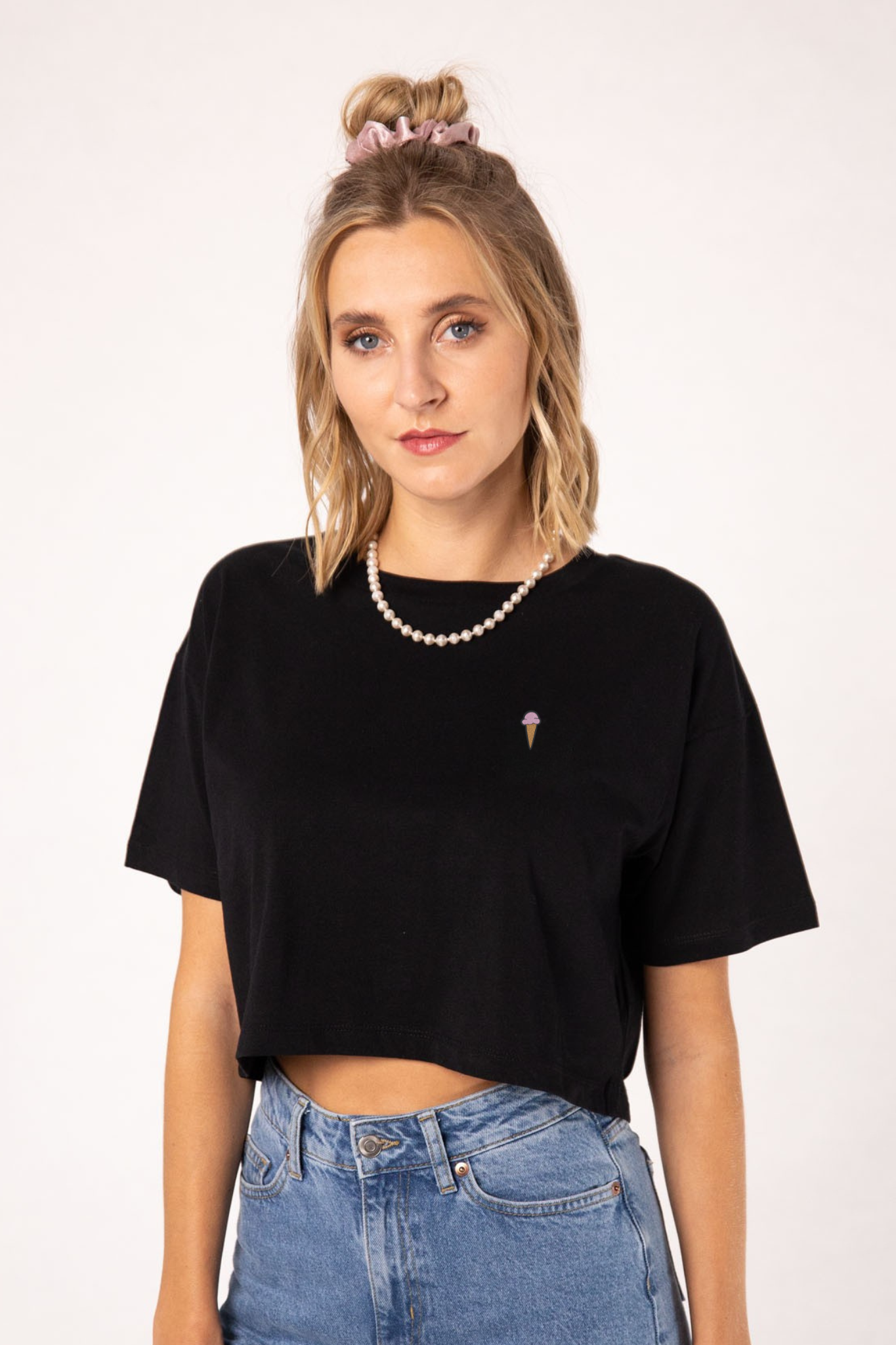 Eis | Besticktes Bio Baumwoll Cropped T-Shirt