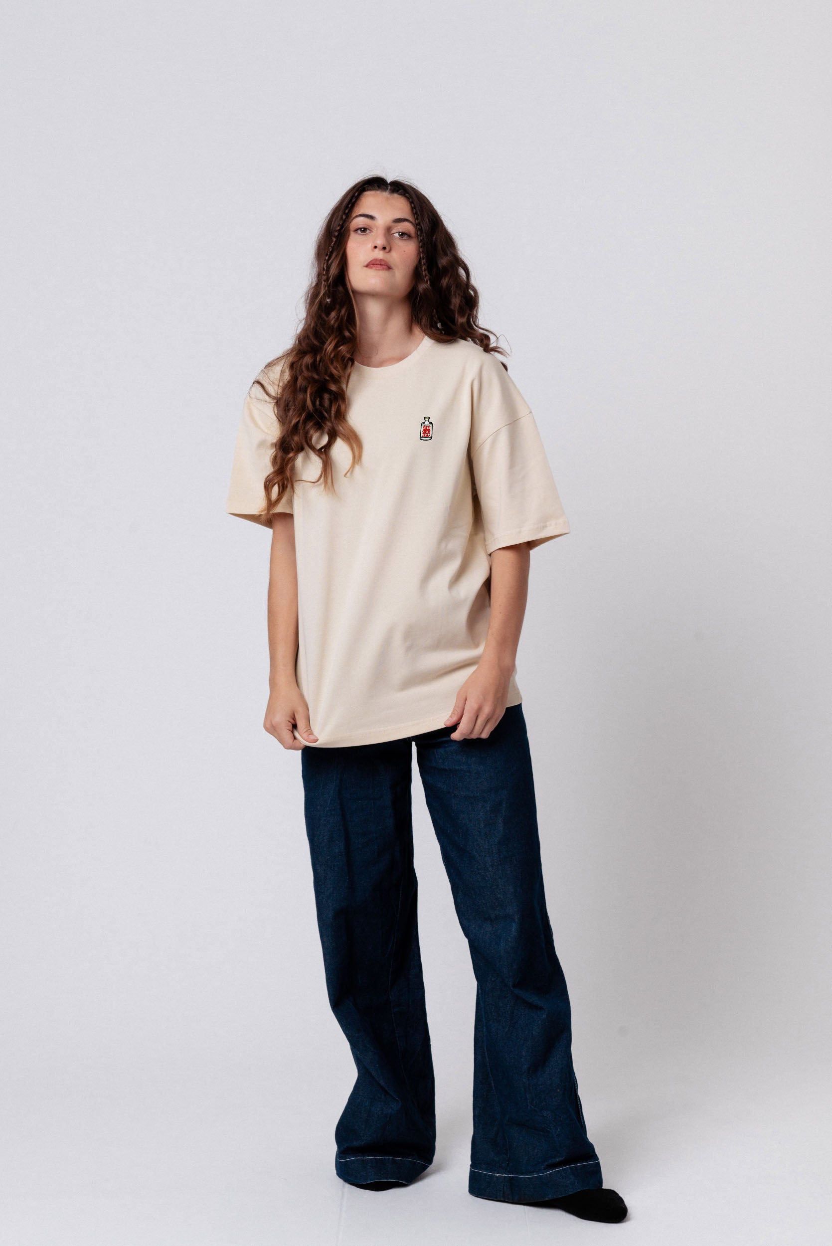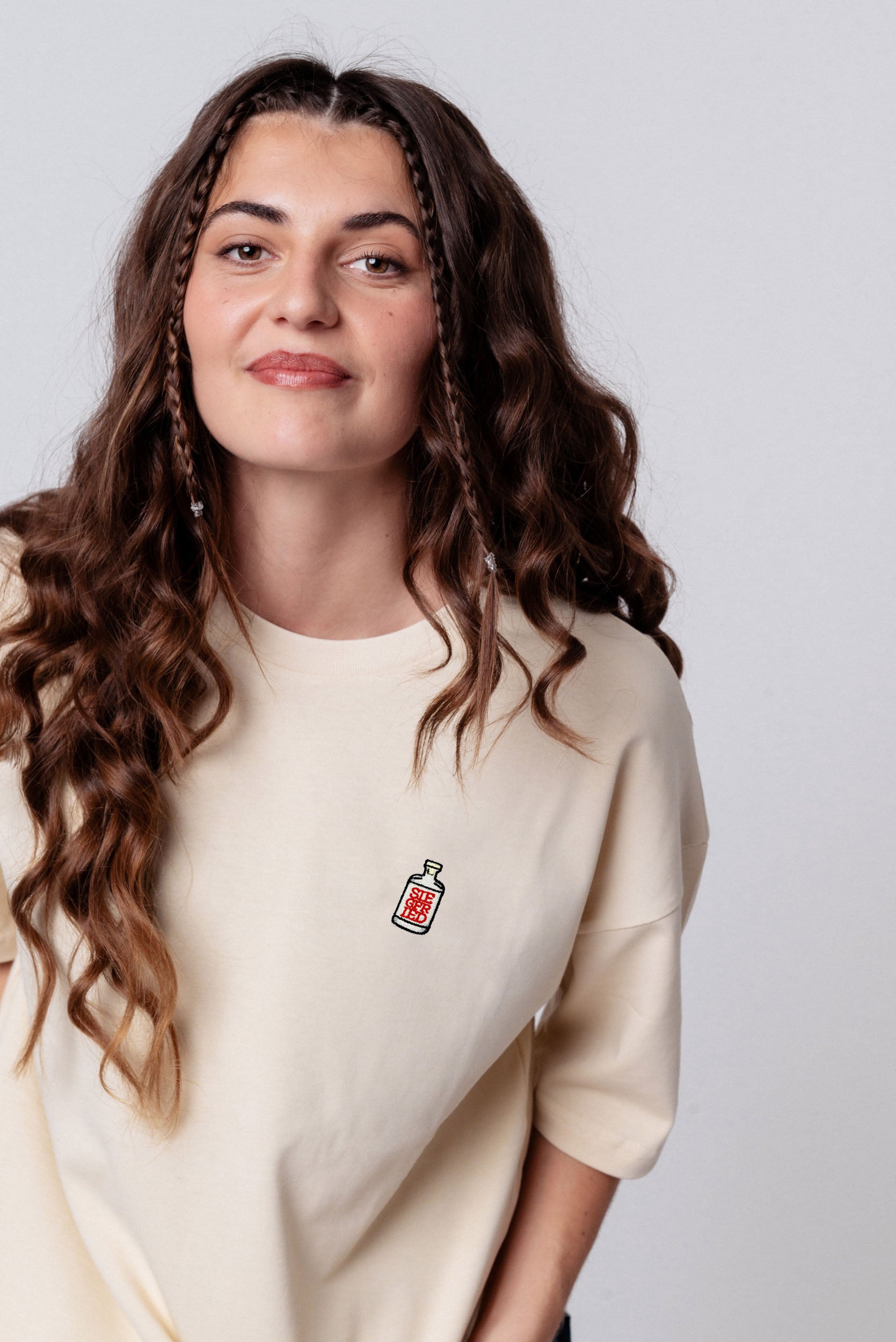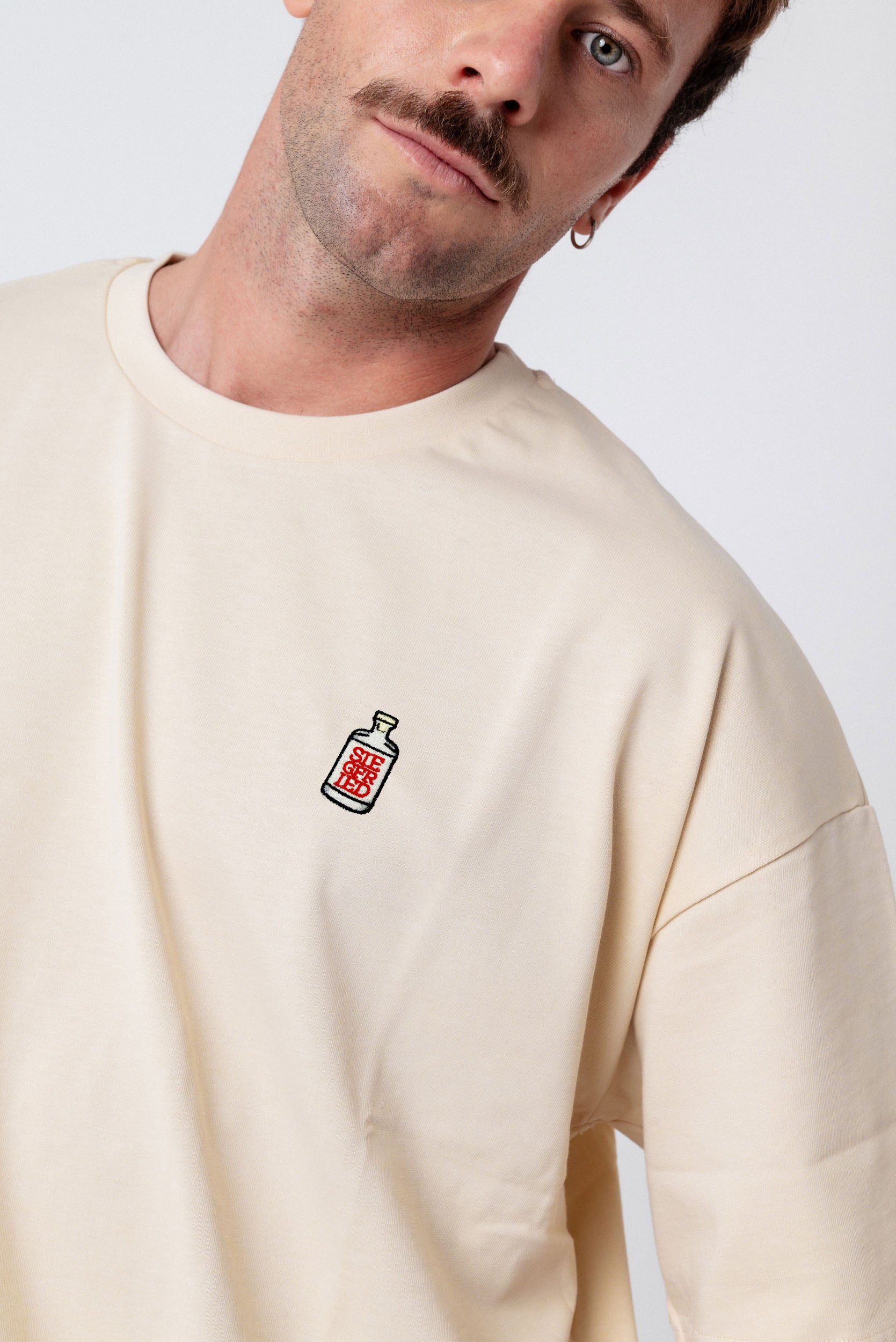 Heavy Oversized Bio Baumwoll T-Shirt mit extra schwerem Stoff (230gsm) und offiziell gesticktem Siegfried Gin Design