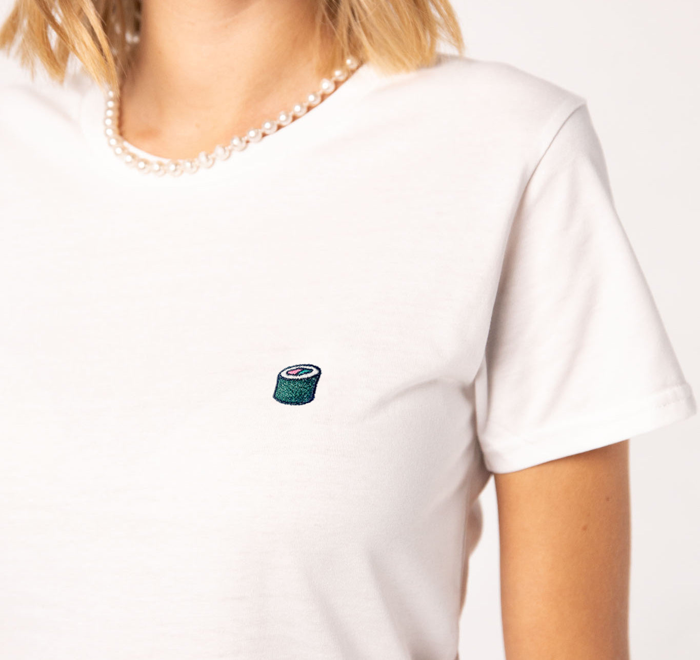 Hochwertige Stickerei auf weicher, atmungsaktiver Bio-Baumwolle.