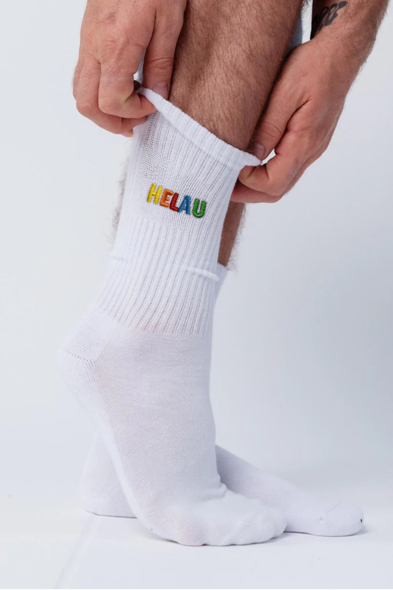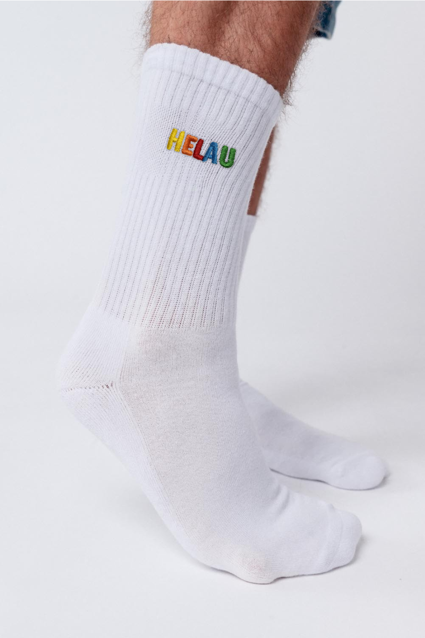 Perfekt für die Karnevalsaison: Super hochwertige Bio Baumwoll Crew Socken mit gesticktem Helau Schriftzug