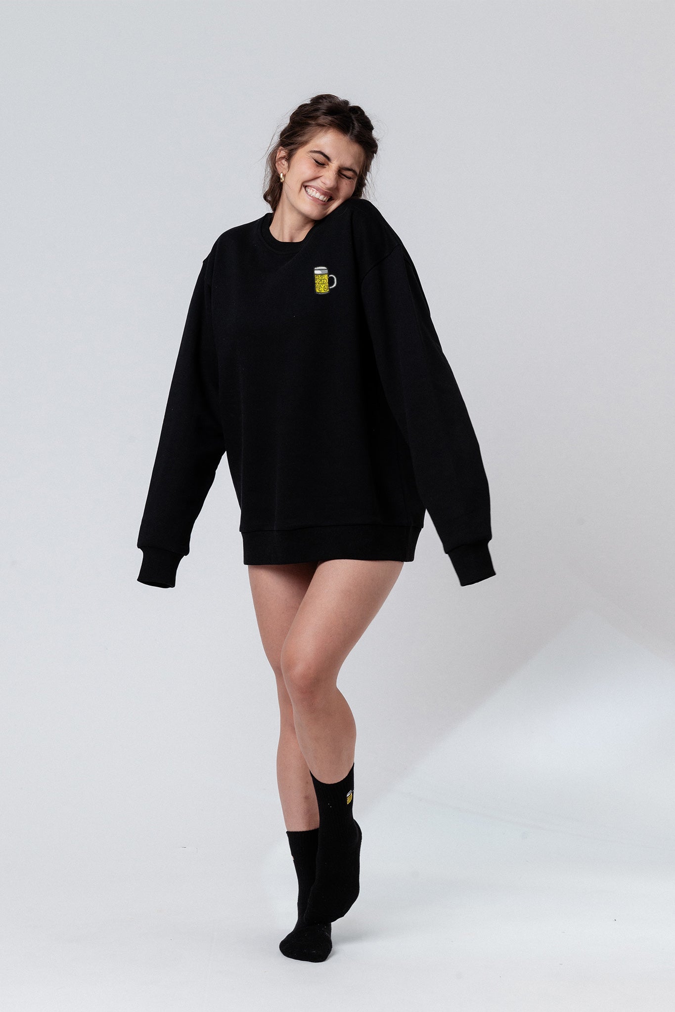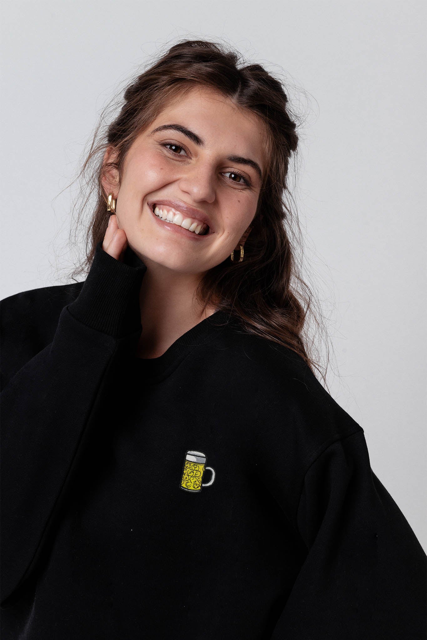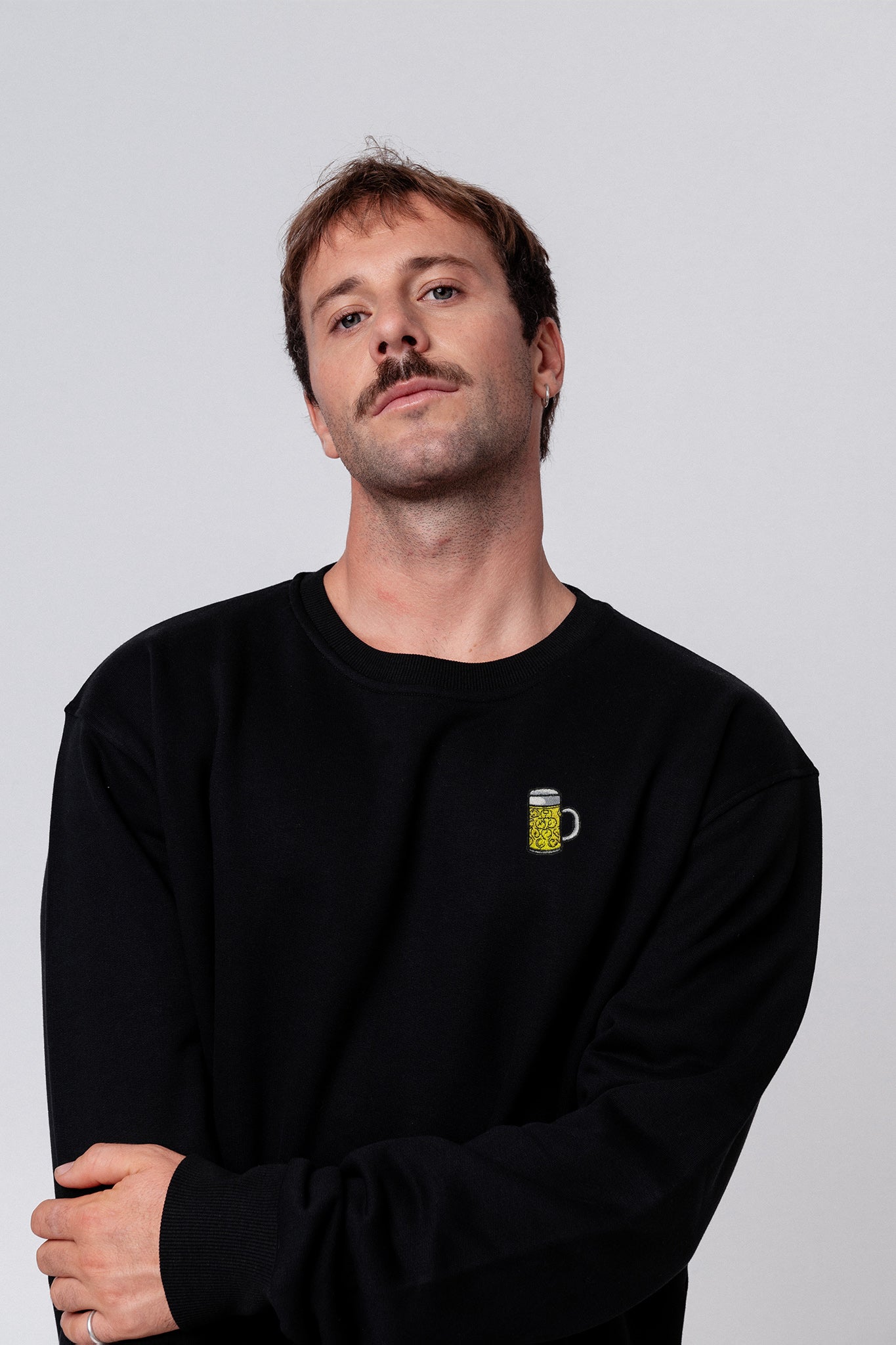 Bestickter Bio Baumwoll Unisex Pullover mit schwerem Stoff (320gsm) und gesticktem Maßkrug Design
